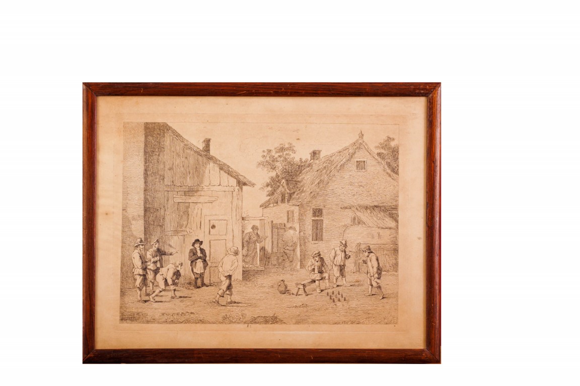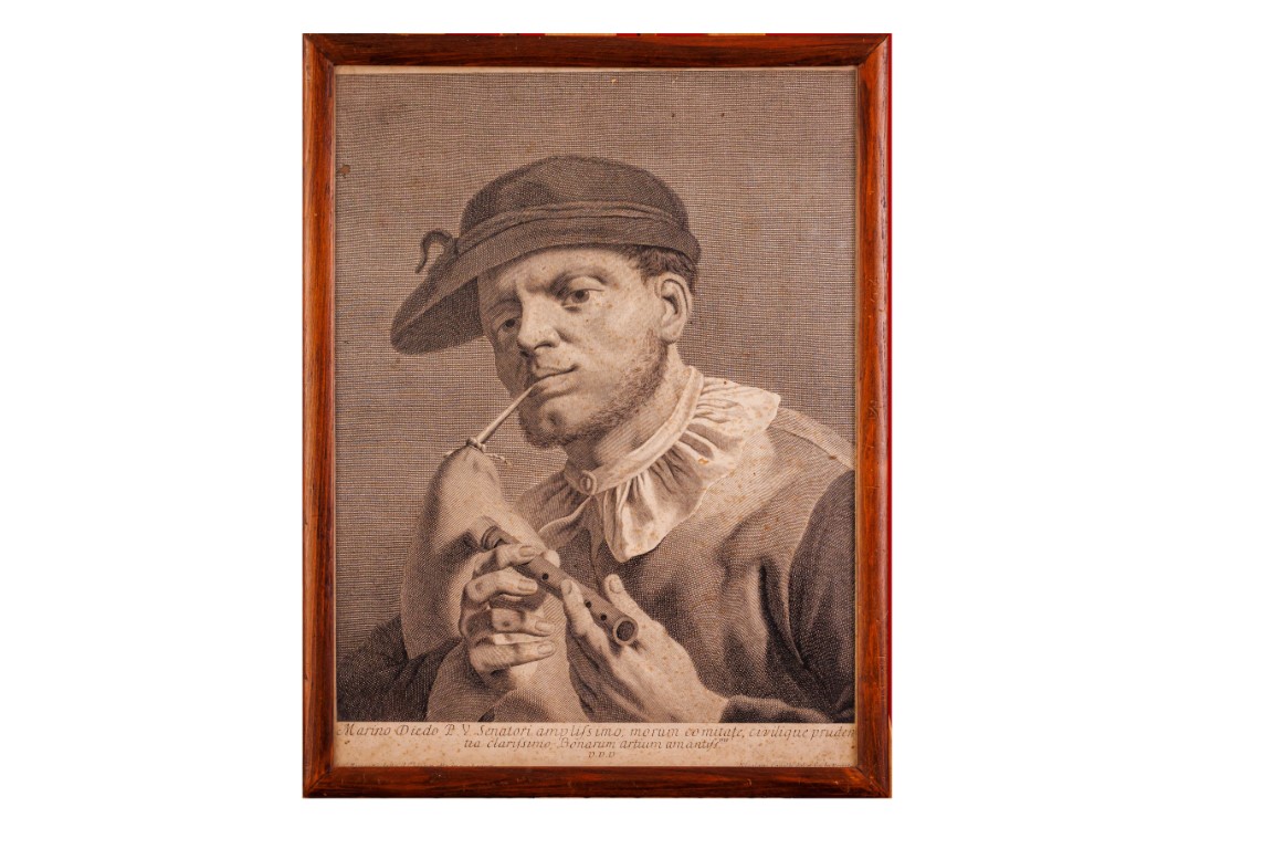 Acquaforte di Nicolo Cavalli (1730-1822) da un dipinti di Antonio Marinetti detto il Chiozzotto (1719-1796) con raffigurato un suonatore di zampogna