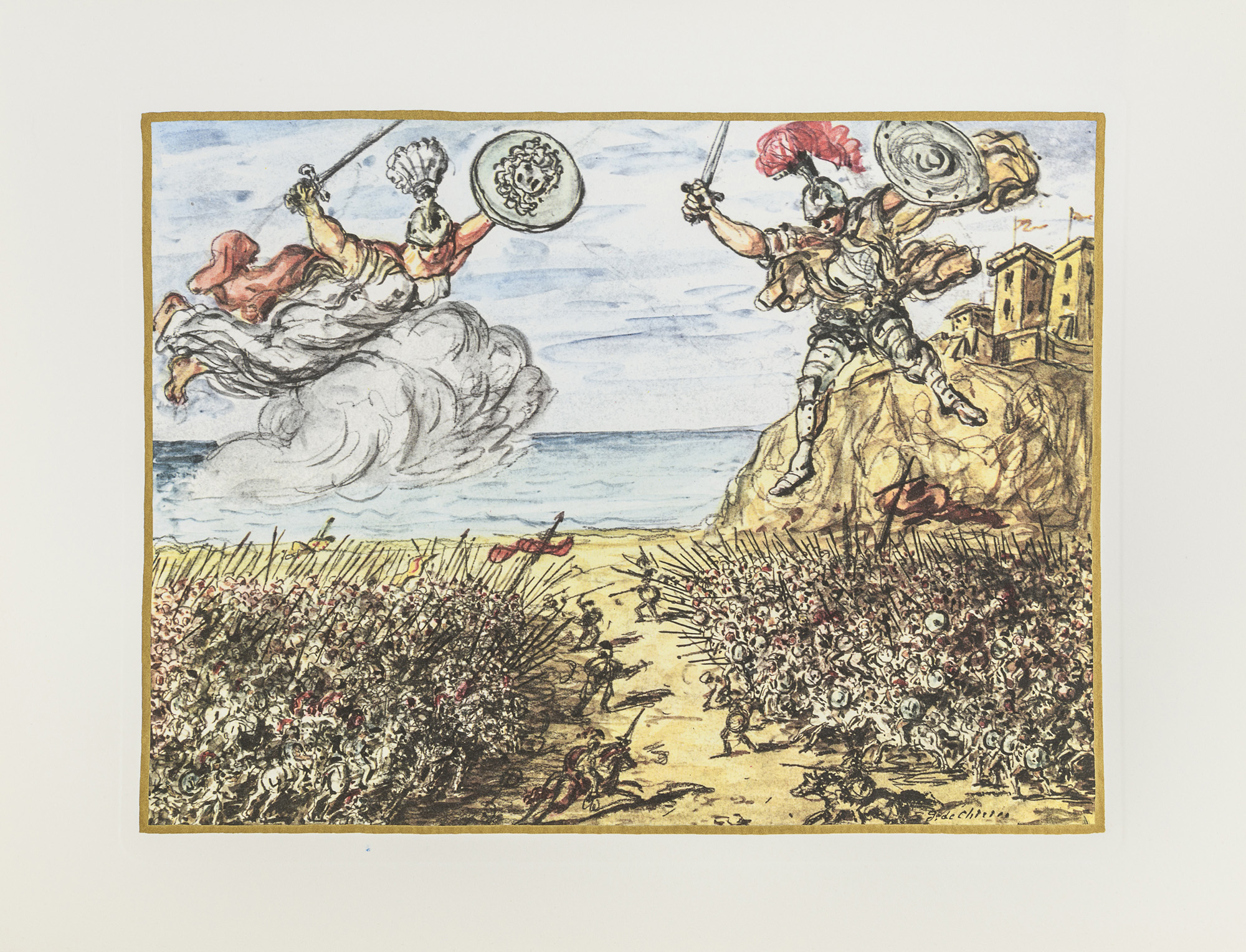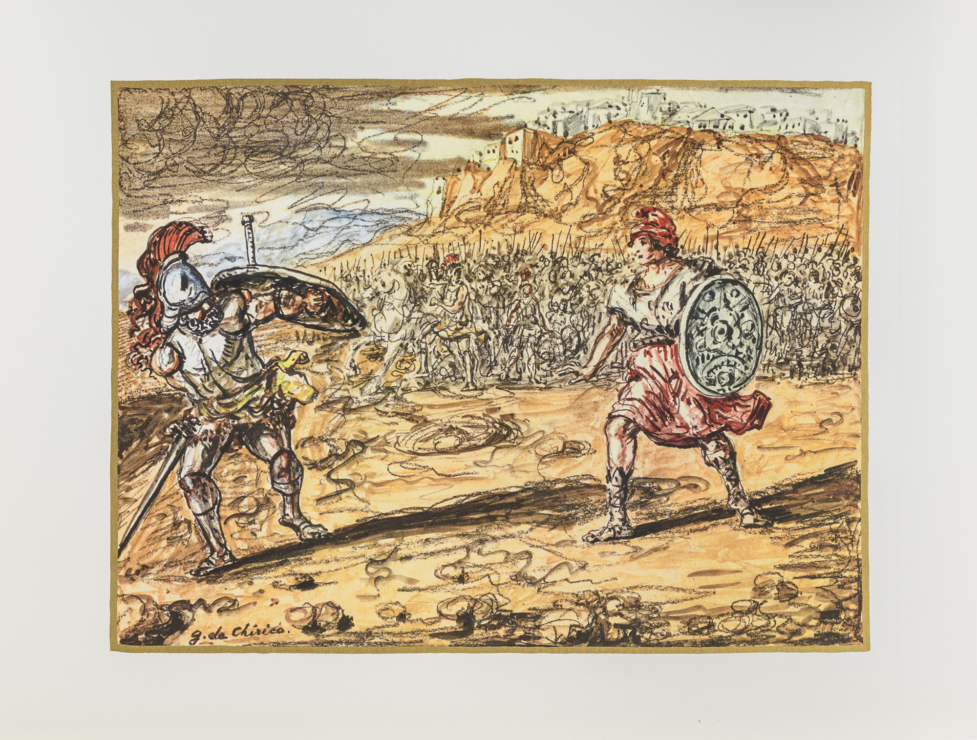 un volume con episodi scelti e tradotti da Salvatore Quasimodo, copertina in pelle con placca in bronzo dorato di Guido Veroi. Un volume con custodia in legno contenente ventisei tavole espressamente eseguite da De Chirico per questa tiratura, ognuna protetta da velina. Delfino Edizioni d'Arte Roma.