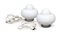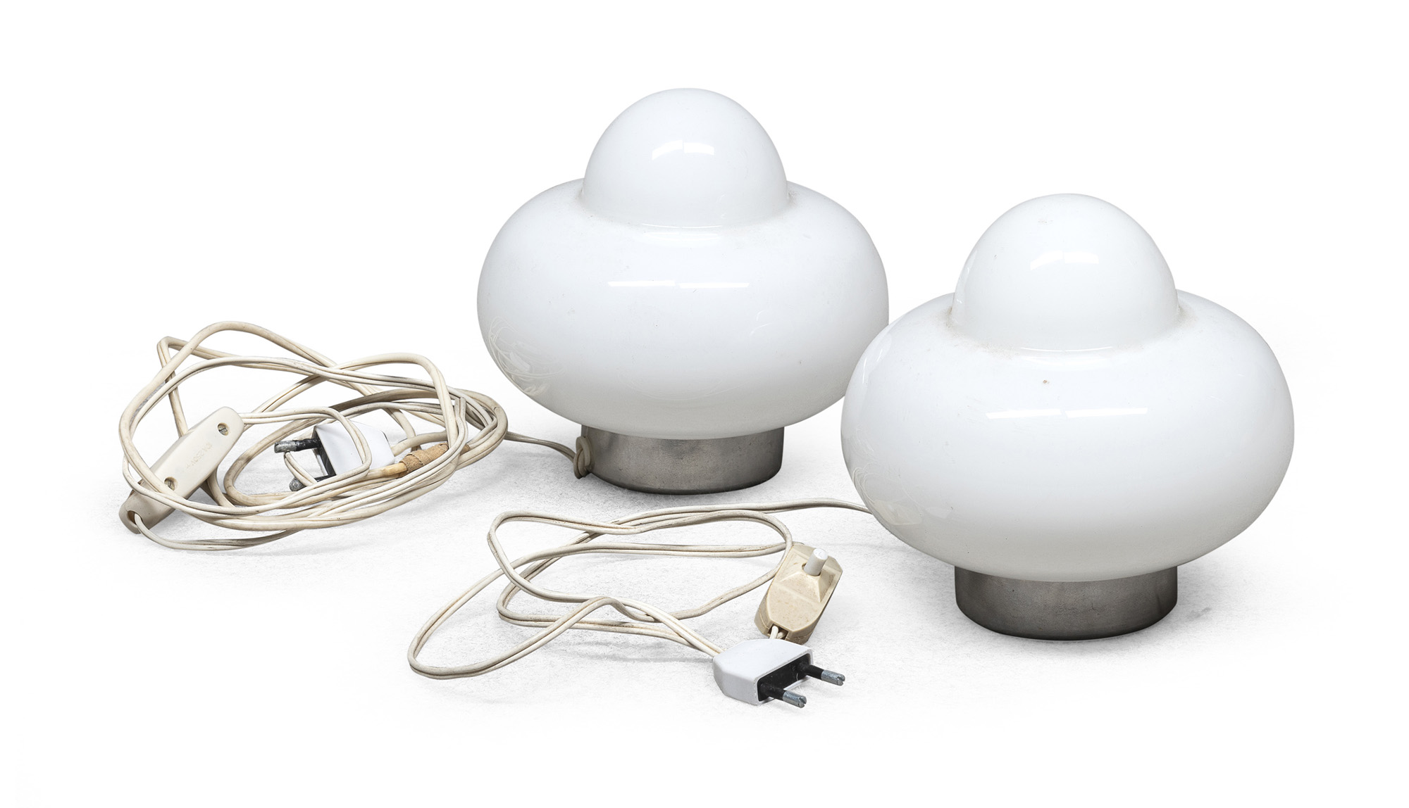con bobeches in opaline bianco-latte e supporto in metallo cromato.