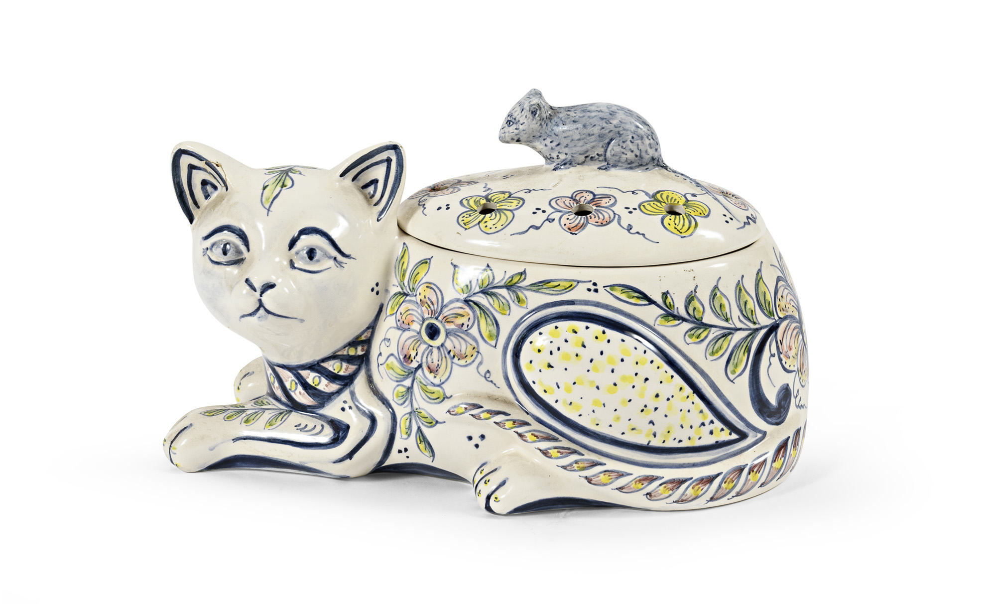 a forma di gatto e coperchio con presa a figura di topolino.