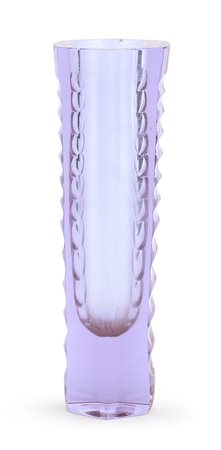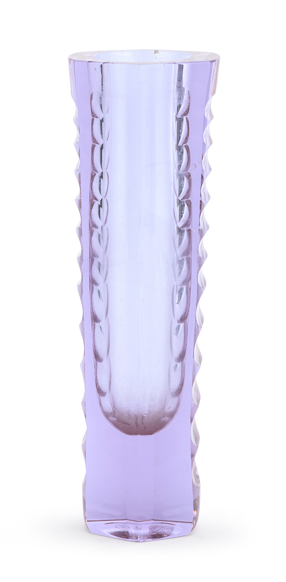 in cristallo trasparente sui toni del viola con corpo rudentato.