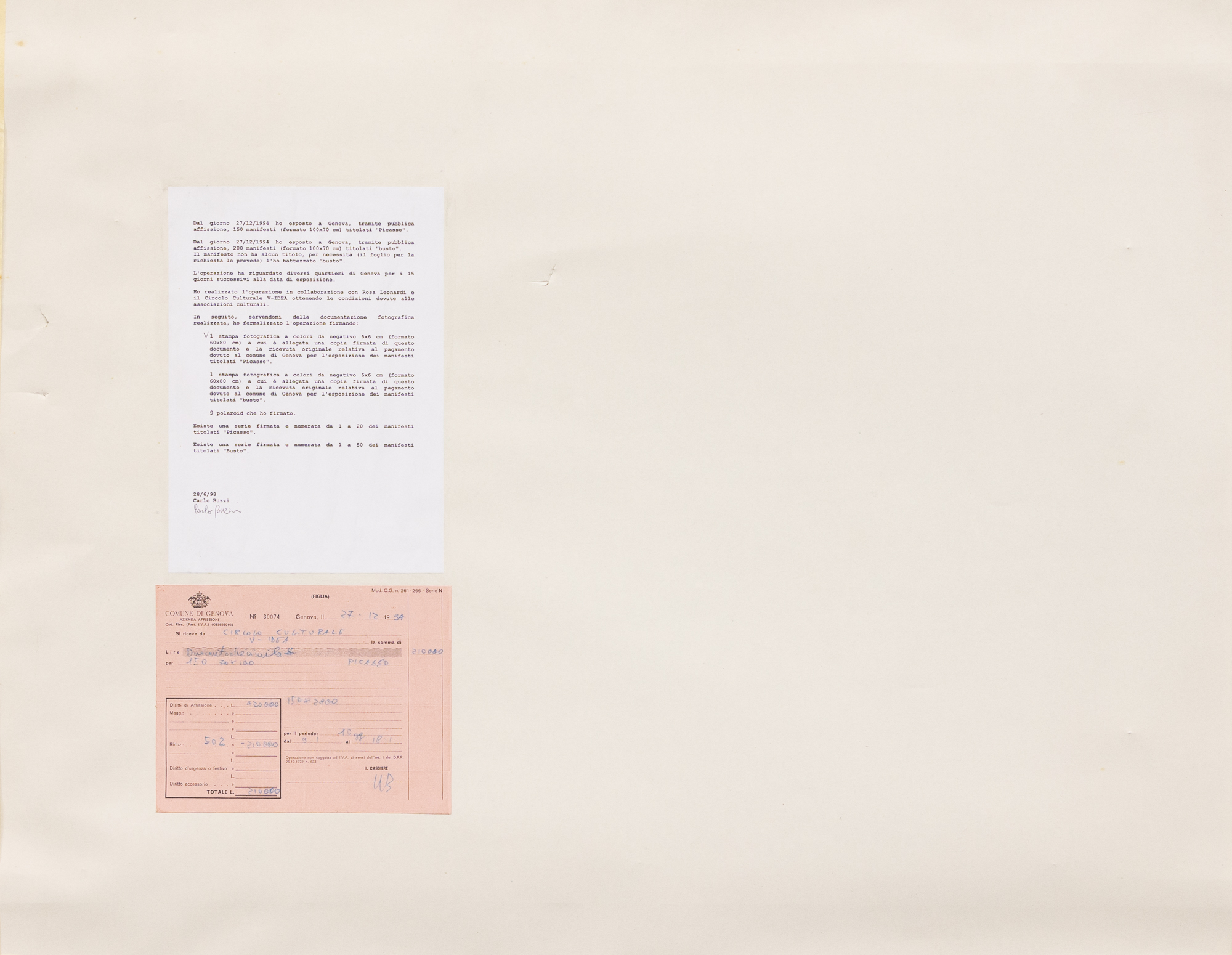 Centocinquanta manifesti dal 9 Gennaio 1995 per dieci giorni.