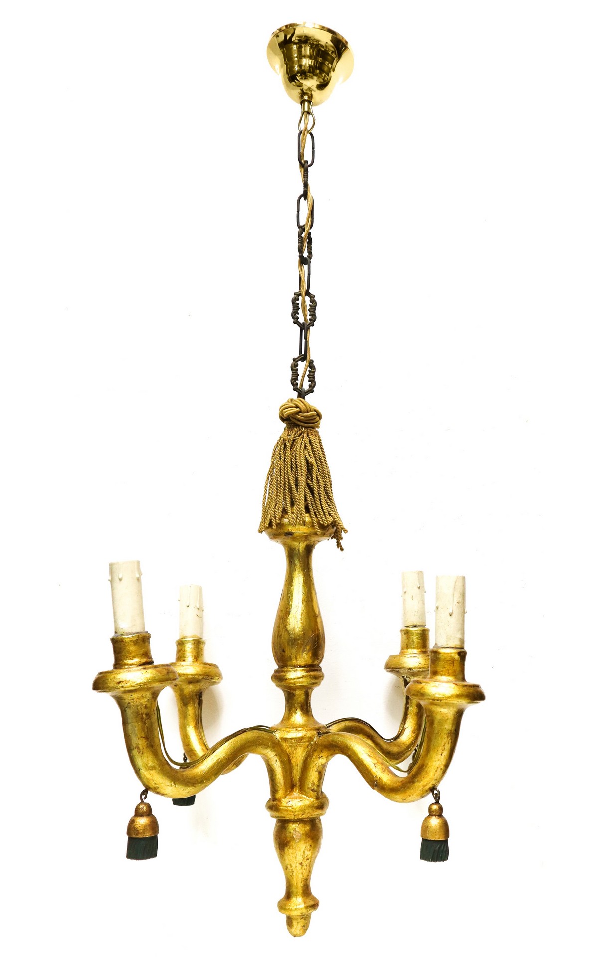Antico lampadario in legno dorato a foglia, Sicily, XVIII secolo h cm 45 più catena x cm 45