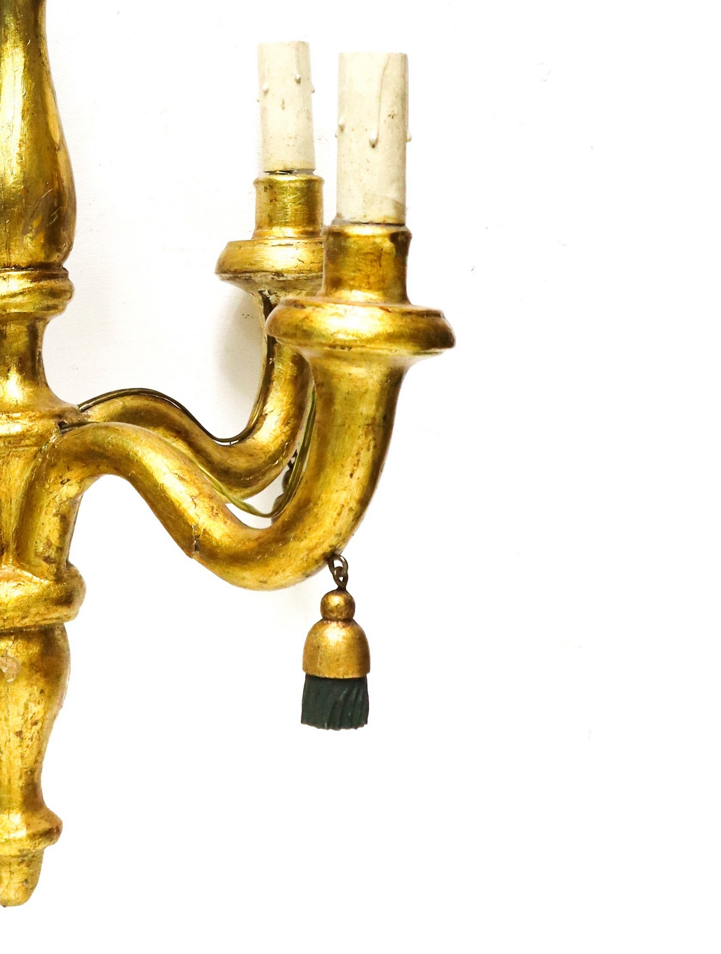 Antico lampadario in legno dorato a foglia, Sicily, XVIII secolo