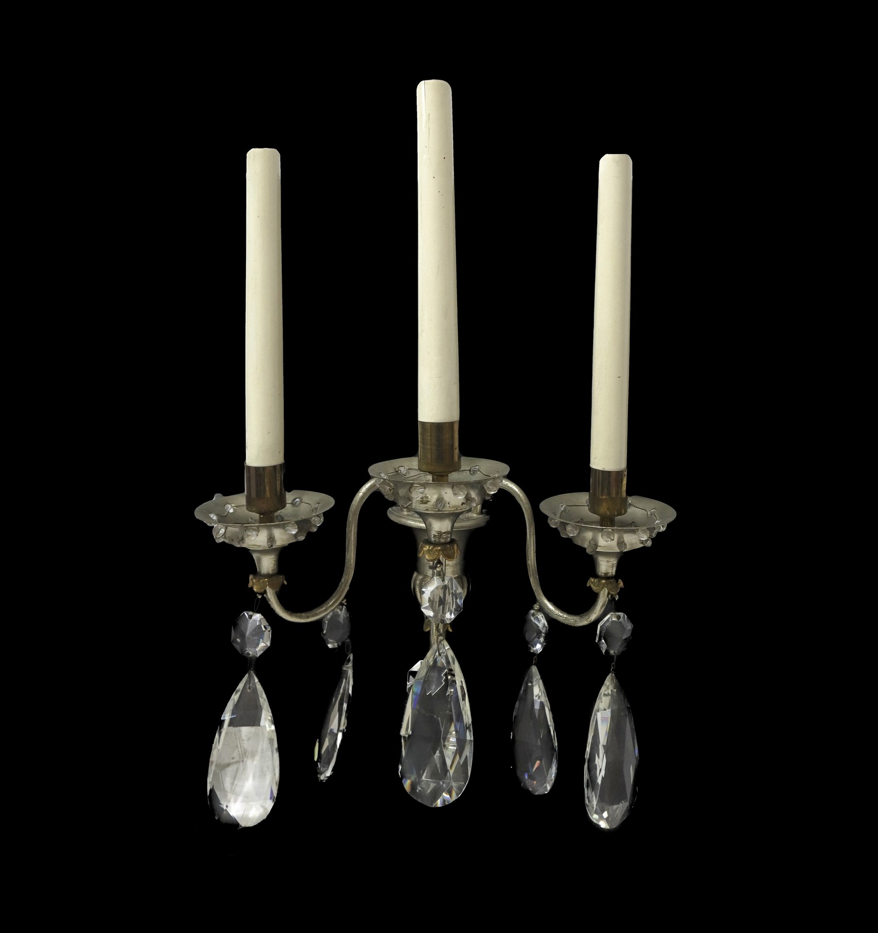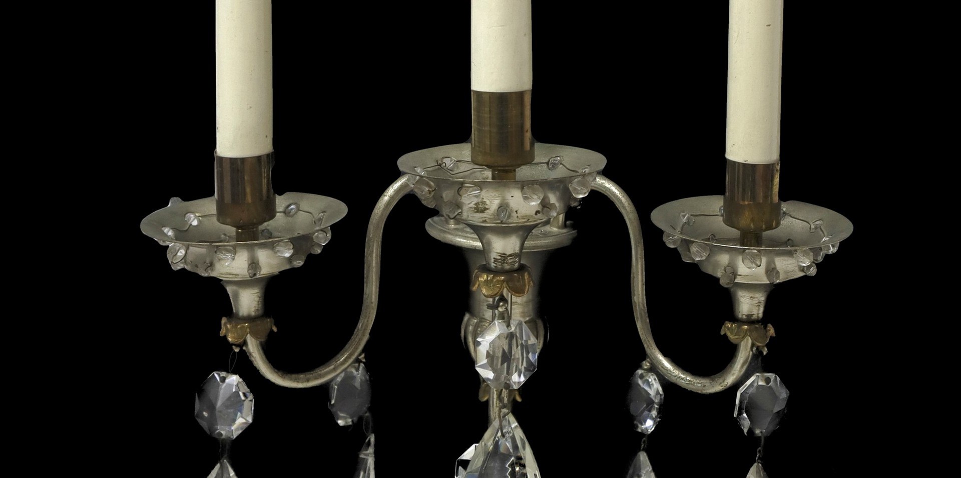 Lot 102 | Coppia di appliques in metallo e brindoli a tre candele