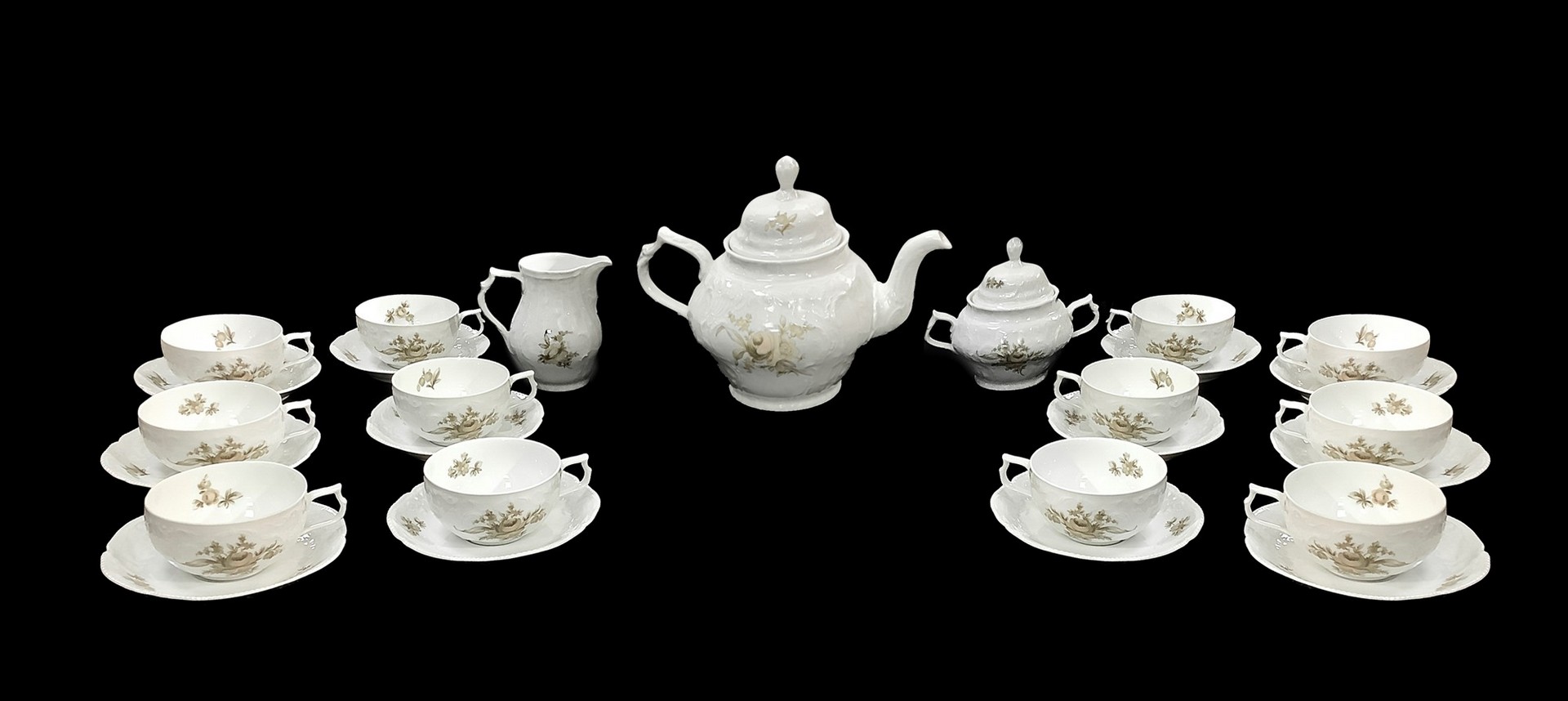 Rosenthal (1879) - Servizio da the Sanssouci 'Brown Rose', 60's Composto da 12 tazze con piattini, teiera,lattiera e zuccheriera.Composto da 12 tazze con piattini, teiera,lattiera e zuccheriera.