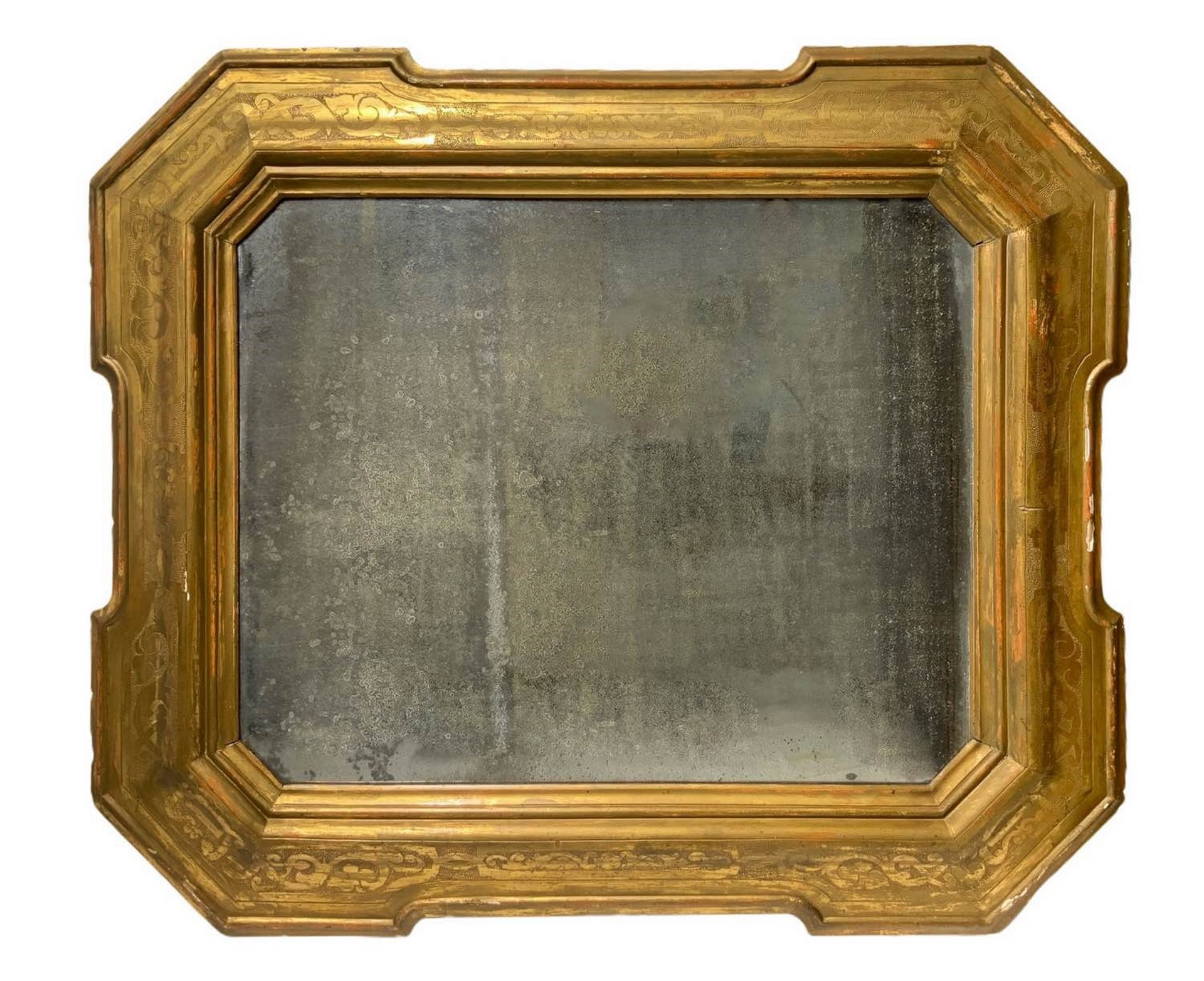 Grande ed importante specchiera in legno dorato con decorazione , XVIII secolo 105x126 cm Specchio al mercurio