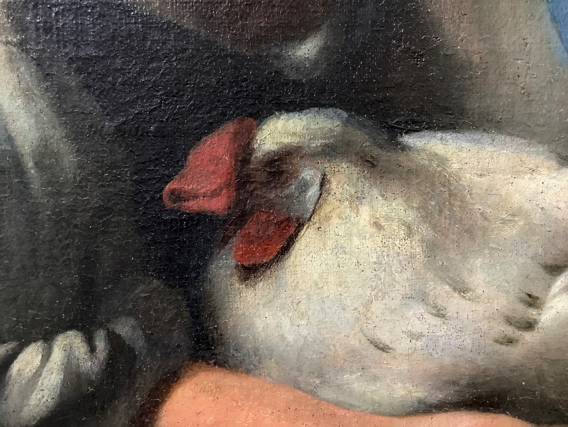 Antonio Cifrondi (Clusone 1656-Brescia 1730) - Donna con gallina, 1700-1730 84x105 cm Dipinto ad olio su tela