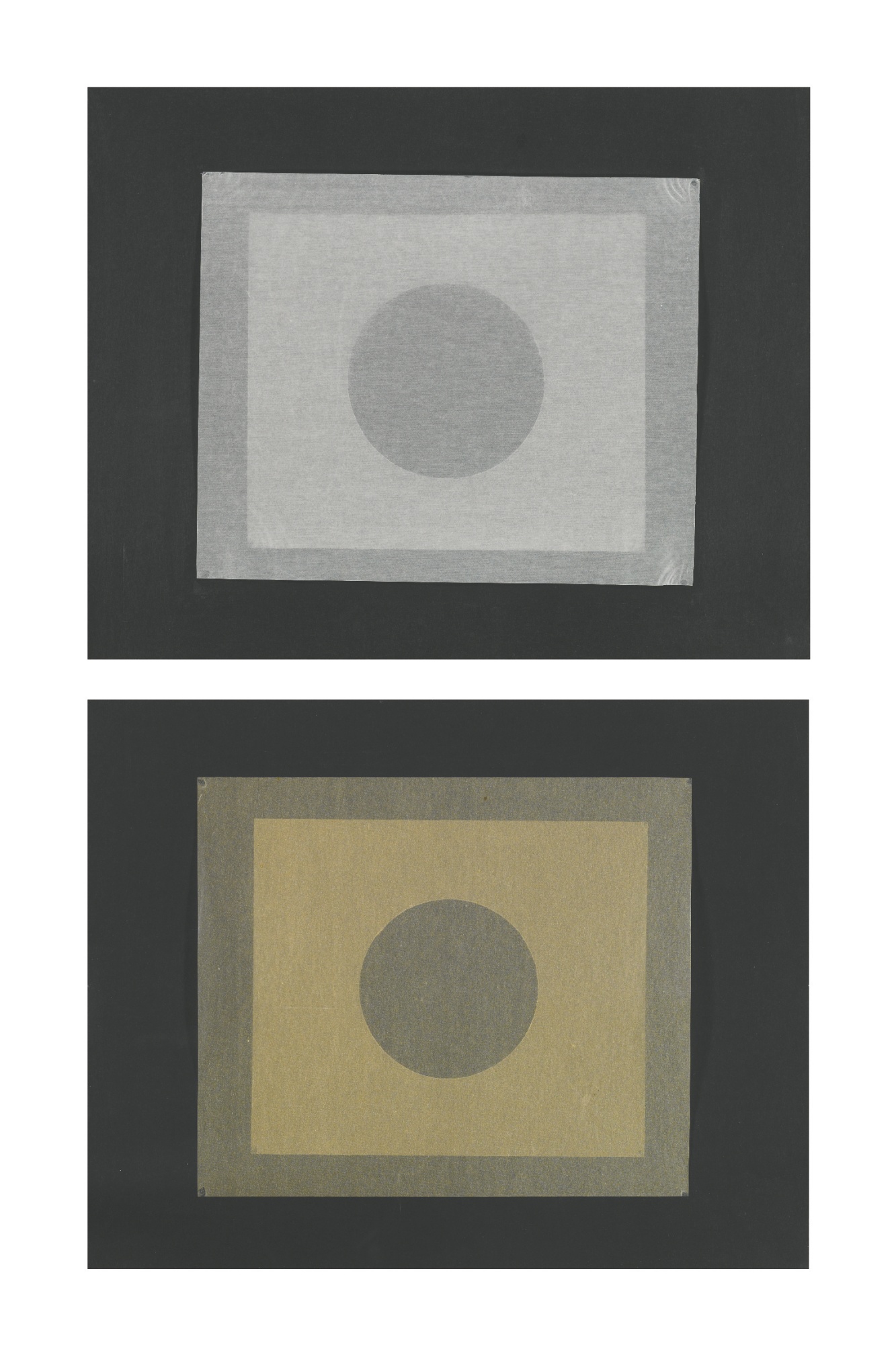FRANCESCO LO SAVIO 1935 - 1963 DUE FILTRI mixed media on contact paper. Executed in 1960 circa tecnica mista su carta da lucido cm 46,5x58,5 ciascuno Eseguito nel 1960 circa PROVENANCE Collezione Filippo Strini, Roma Galleria Primo Piano, Roma Ivi acquistato dall'attuale proprietario nel 1974