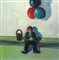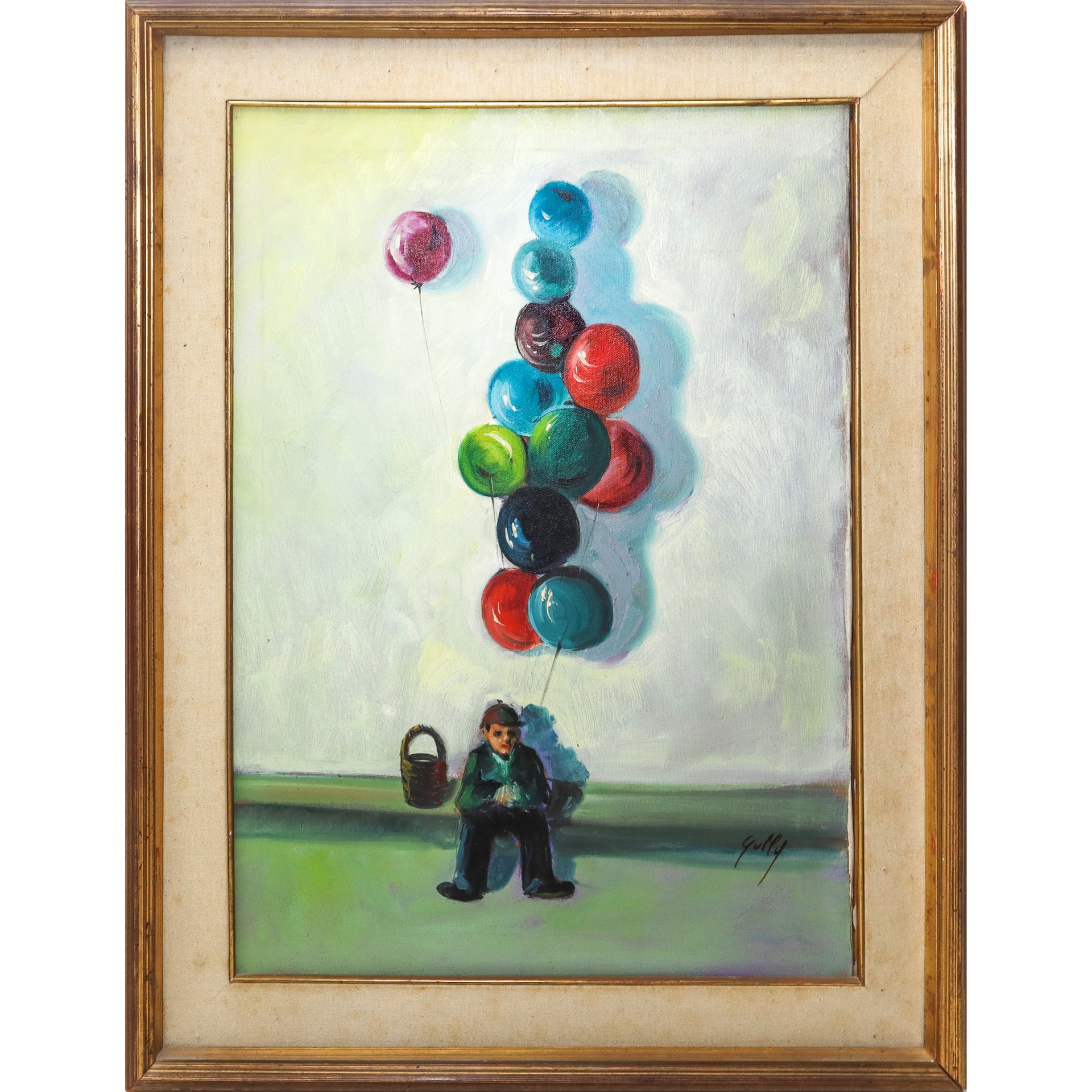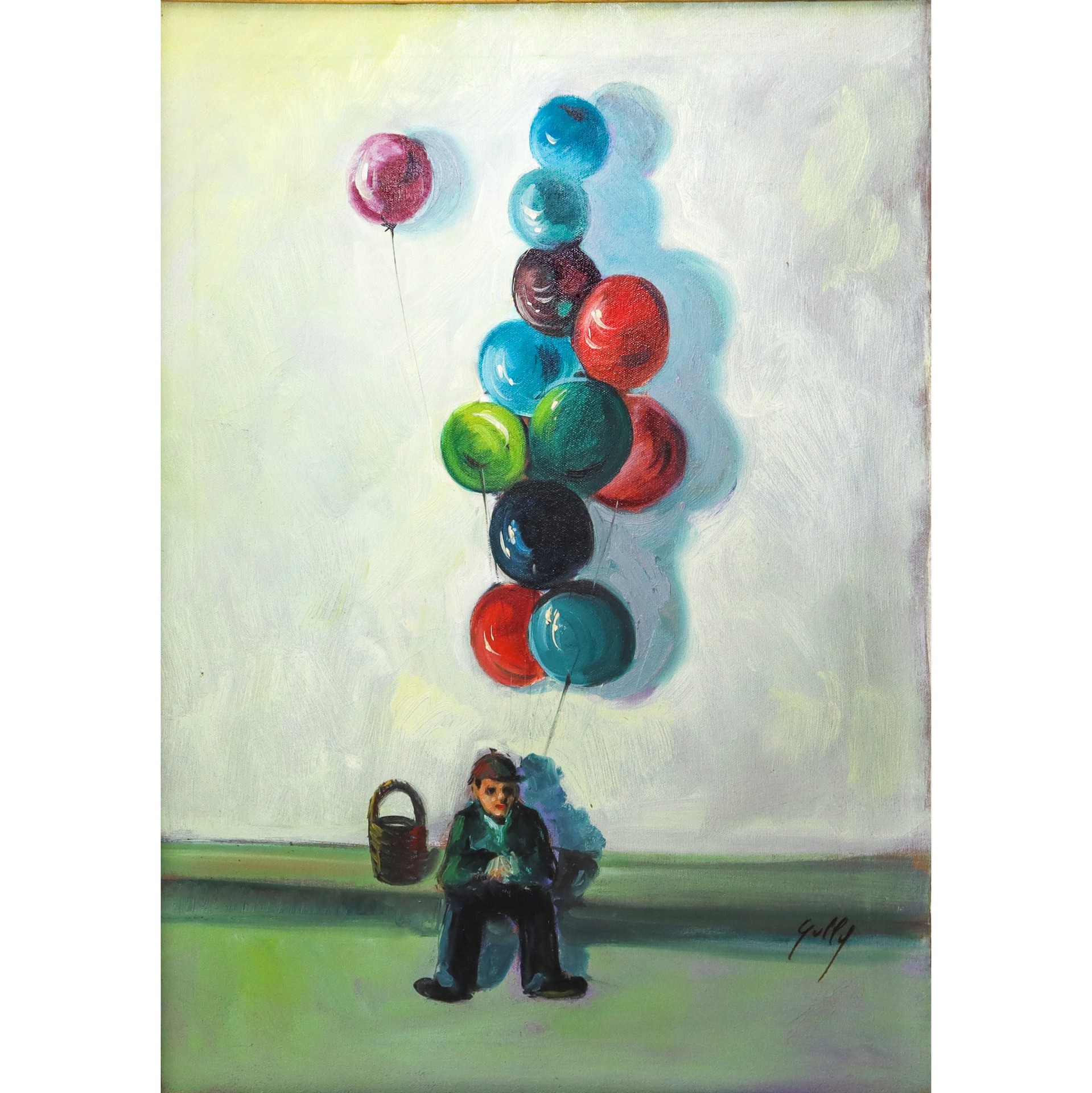 Venditore di palloncini cm 70 x 50 , in cornice 85 x 65 Olio su tela Firmato Gully in basso a destra e sul retro