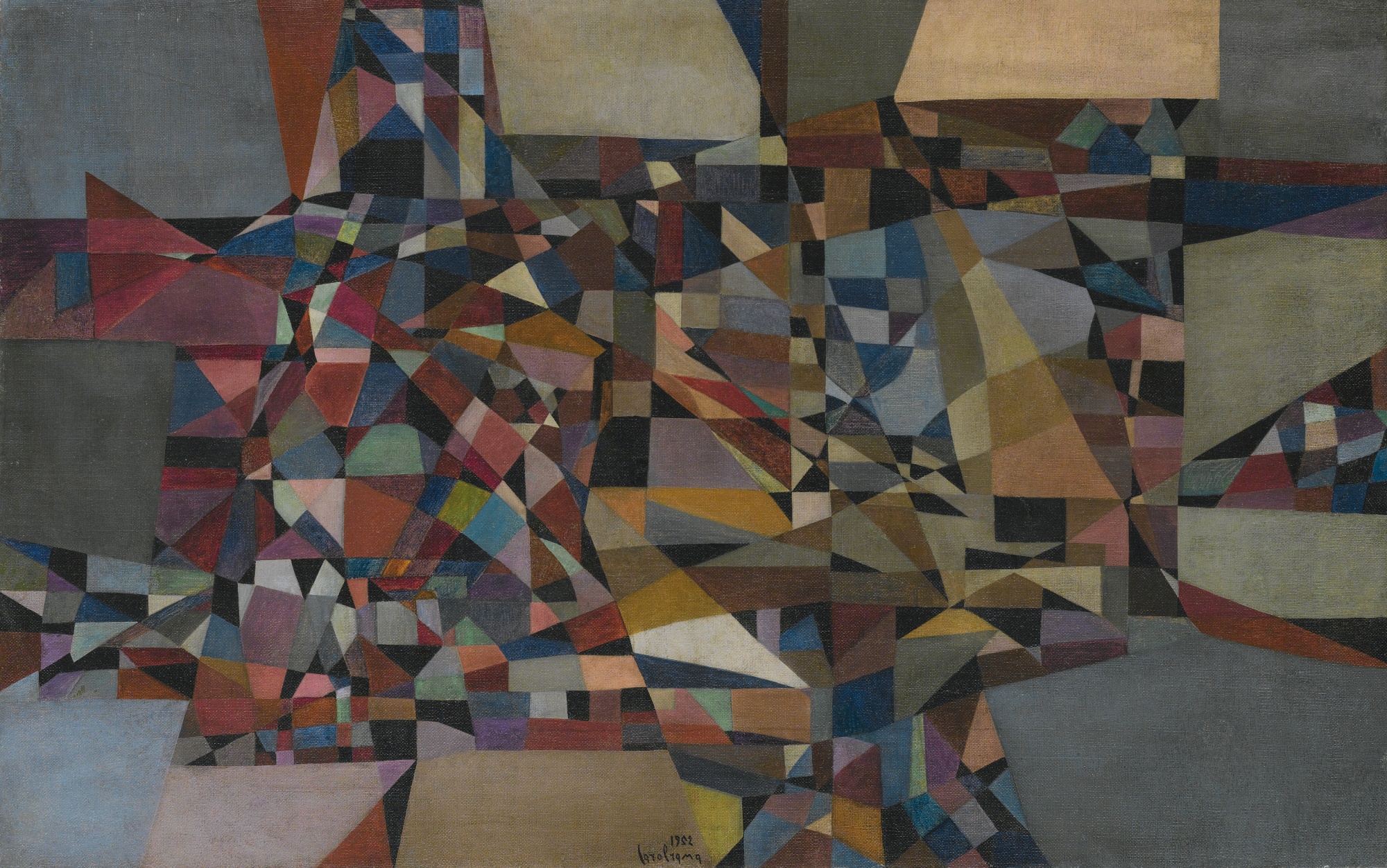 CAROL RAMA N. 1918 COMPOSIZIONE signed and dated 1952, oil on canvas firmato e datato 1952 olio su tela cm 70x110 L'opera è accompagnata da certificato su fotografia rilasciato dall'artista PROVENANCE Galleria Borromini Arte Contemporanea, Ozzano Monferrato Collezione privata, Roma Ivi acquisito dall'attuale proprietario EXHIBITED Torre Pellice, Civica Galleria d'Arte Contemporanea "Filippo Scroppo", Filippo Scroppo e il MAC Torinese (1948- 1956), 2003, pag. 22, illustrato Torino, Fondazione Sandretto Re Rebaudengo; Rovereto, MART-Museo di Arte Moderna e Contemporanea di Trento e Rovereto; Gateshead, BALTIC, The Centre of Contemporary Art, Carol Rama, 2004-2005, pag. 78, illustrato CATALOGUE NOTE "Rama appartiene a quel raro manipolo di artisti che non temono [...] di misurarsi con nulla. [...] Dipinge una serie di tele dalla geometria esoterica, arcaica. Sono composizioni dove quadrati. ma più ancora losanghe e rombi (aquiloni, bandiere, scritture paramusicali?) galleggiano su sfondi lunari; segni inafferrabili che conservano la fascinazione di un microcosmo cifrato, elementi di trame mobili e variate, conduttori di rapporti misteriosi come astuti interpreti di una storia, simulazione di ritmi organici e vitali." Lea Vergine, Carol Rama, Milano 1985, p. 13