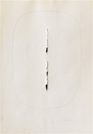 LUCIO FONTANA 1899 - 1968 CONCETTO SPAZIALE firmato matita e strappo su carta...