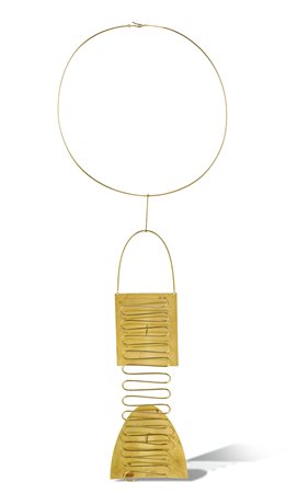 FAUSTO MELOTTI 1901-1986 COLLANA signed and numbered 0/6 P.A., gold. Executed in 1972 firmato e numerato 0/6 P.A. oro cm 41x15,5x1,9 Eseguito nel 1972 Opera registrata presso la Fondazione Fausto Melotti, Milano con il n. Jene 009 L'opera è accompagnata da certificato su fotografia rilasciato dalla Fondazione Fausto Melotti, Milano PROVENANCE Collezione Palazzoli, Milano Ivi acquisito dall'attuale proprietario