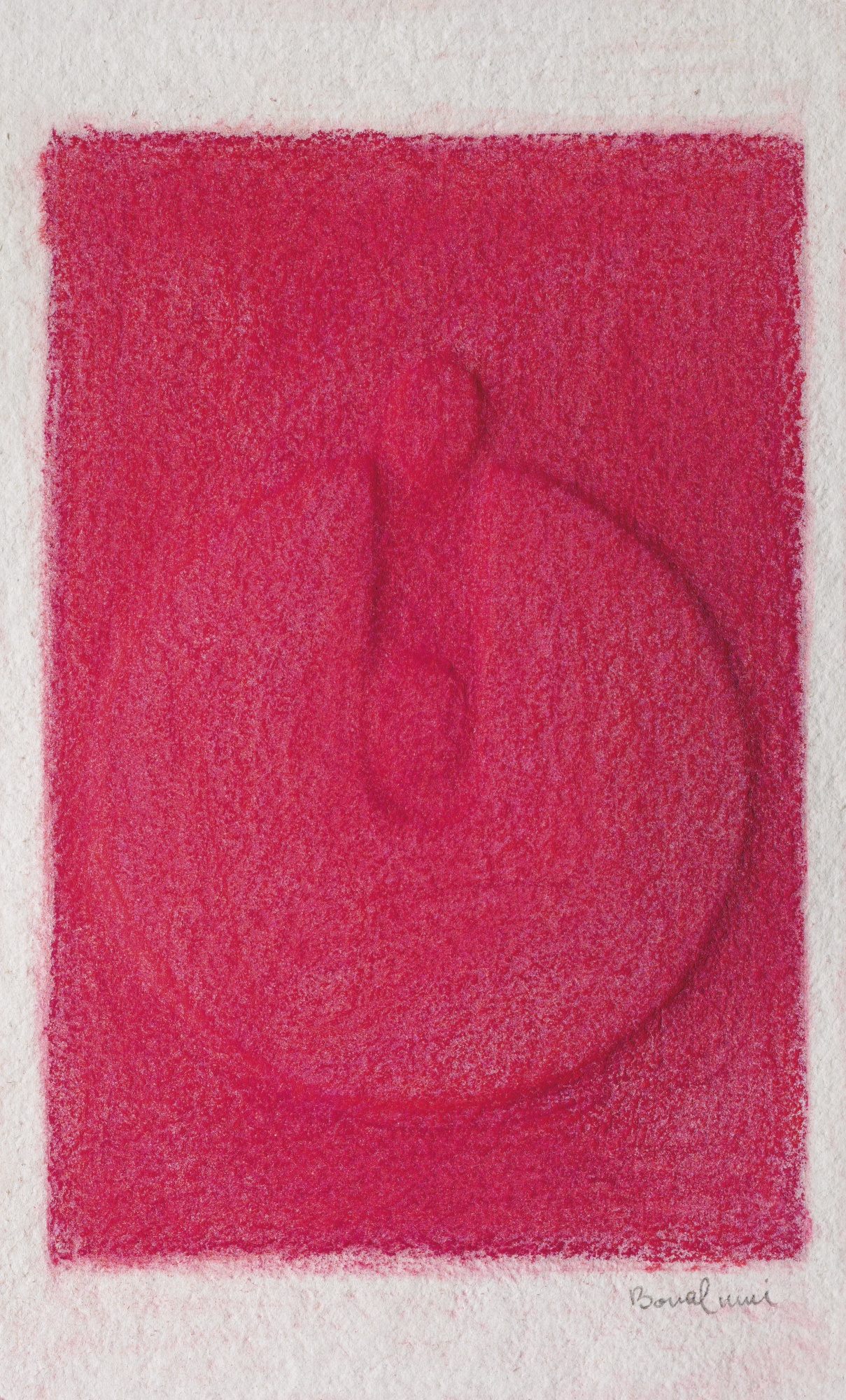 AGOSTINO BONALUMI 1935-2013 ROSSO signed; signed and inscribed on the reverse, shaped paper and chalk. Executed in 1972 firmato; firmato e iscritto sul retro carta estroflessa e gessetto cm 36x22 Eseguito nel 1972 Opera registrata presso l'Archivio Bonalumi, Milano, con il n. 72-001P L'opera è accompagnata da certificato su fotografia rilasciato dall'Archivio Bonalumi, Milano PROVENANCE Galleria Marchese, Prato Ivi acquistato dall'attuale proprietario nel 2008