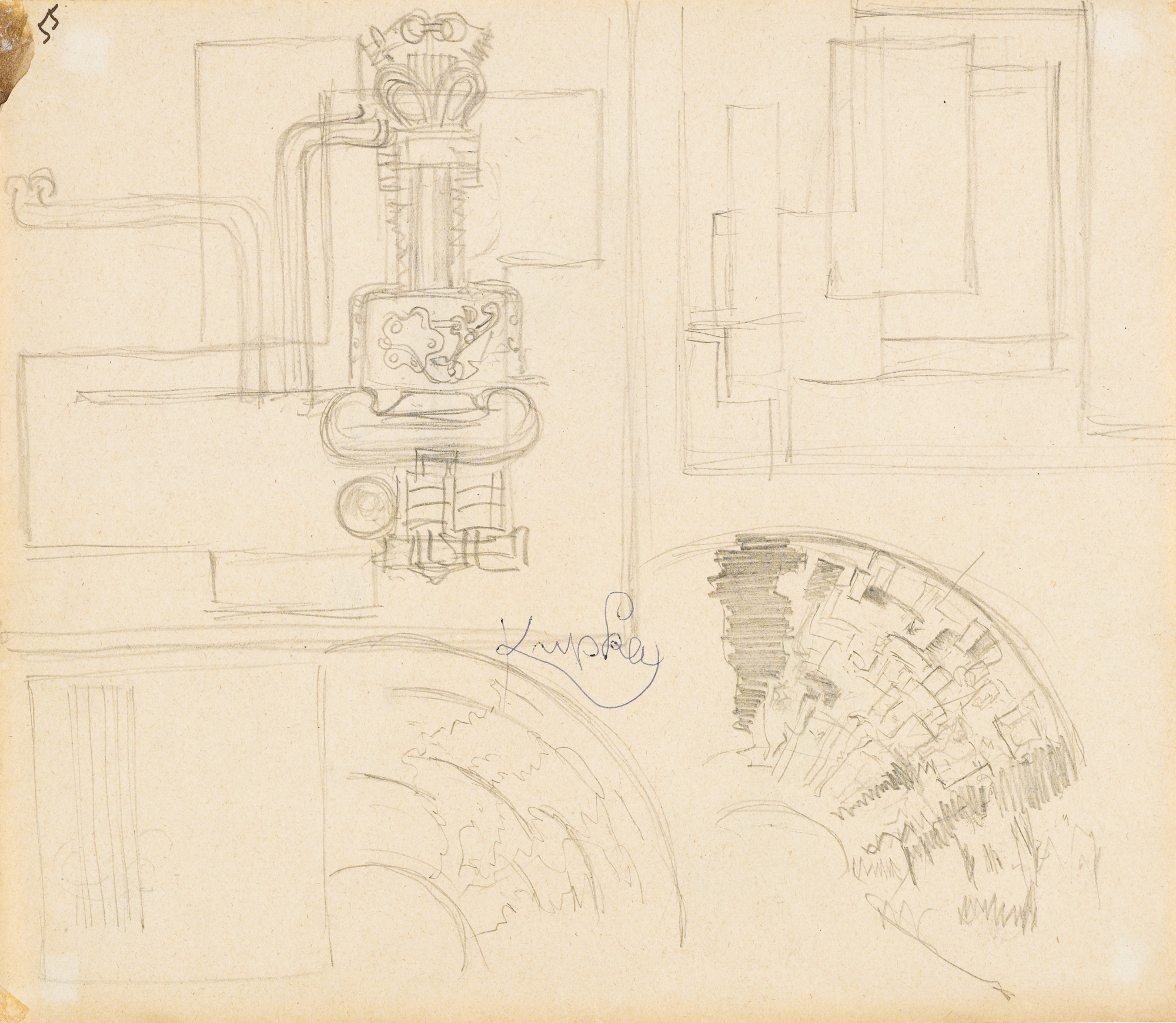 FRANKTISEK KUPKA 1871 - 1957 ÉTUDE MACHINISTE signed, pencil on paper. Executed in 1928-1929 firmato matita su carta cm 23x27,3 Eseguito nel 1928-29 L'opera è accompagnata da certificato su fotografia rilasciato dalla Galerie Pierre Brullé, Parigi PROVENANCE Galleria Flinker, Parigi Ivi acquistato dall'attuale proprietario nel 1978 EXHIBITED Modena, Galleria Fonte D'Abisso, Frantisek Kupka, 1979, pag 66, illustrato Milano, Galleria Blu; Roma, Studio 2C, Kupka, 1979, pag 15, illustrato