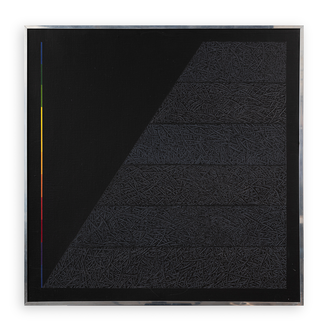 Firma, titolo, datazione, timbro dell'Artista e numero di repertorio al retro