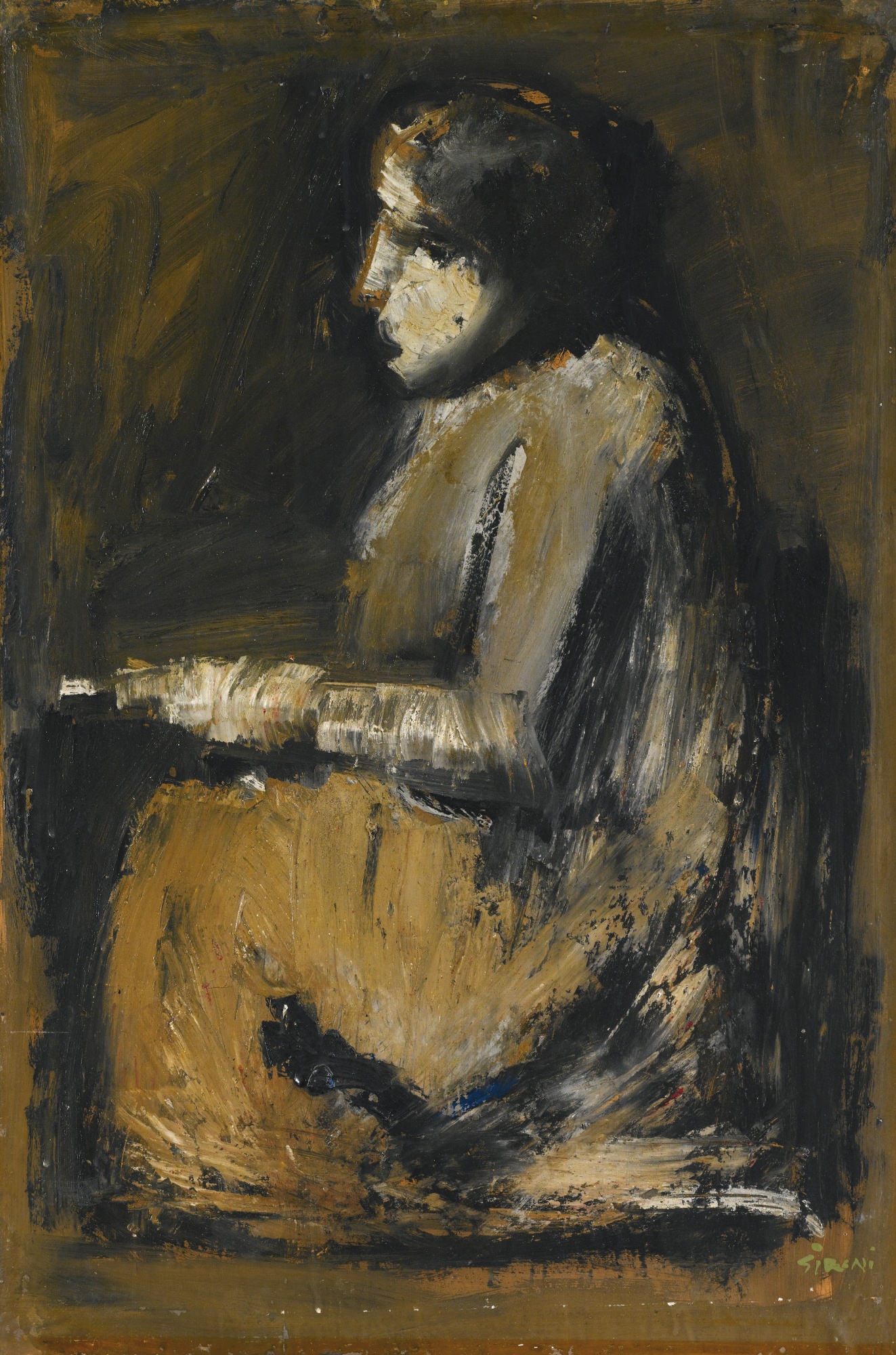 MARIO SIRONI 1885 - 1961 SENZA TITOLO signed, oil on paper laid on canvas. Executed at the beginning of the Thirties firmato olio su carta intelata cm 90x60 Eseguito agli inizi degli anni Trenta L'opera è accompagnata da certificato su fotografia rilasciato da Francesco Meloni PROVENANCE Galleria d'arte il Portico, Santa Margherita Ligure Galleria La Bussola, Torino Ivi acquistato dall'attuale proprietario