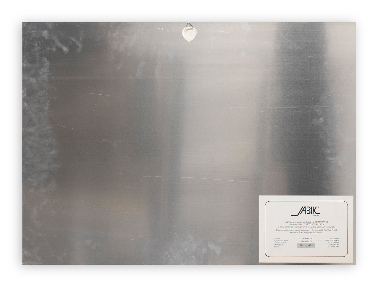 Etichetta Jabik Multipli recante descrizione dell'opera e numerazione (Esemplare 624/2100)