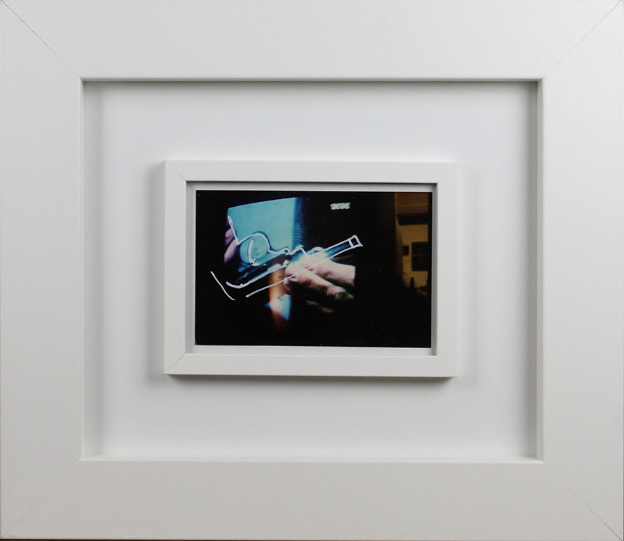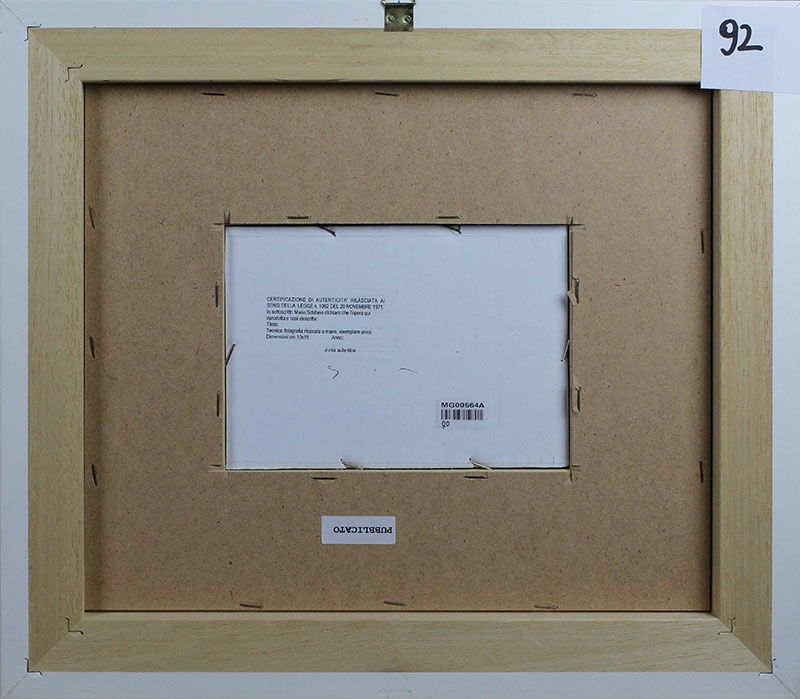 Mario Schifano, La pistola, 1990-97, Foto ritoccata a smalto, Esemplare unico, Dim. 10x15, Opera archiviata presso la Fondazione Mario Schifano " Archivio Generale dell' Opere di Mario Schifano " con n° archivio: F90-97/6007, il 2 agosto 2007, Opera pubblicata sul catalogo " Mario Schifano fotografie ritoccate " a pag.19, volume I, Al verso: firma "Schifano", Opera con cornice