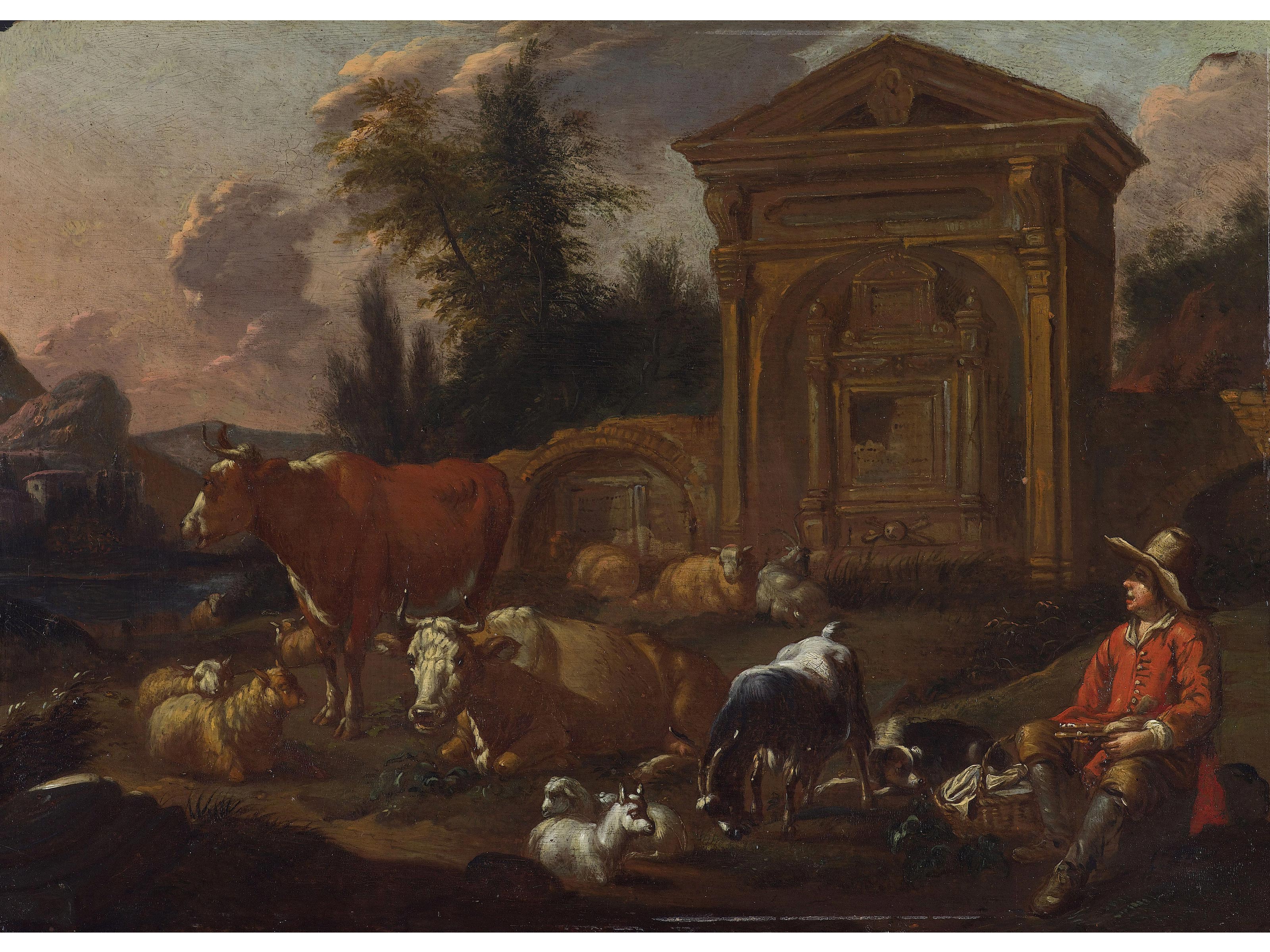 Lot 2 | Cerchia di Pieter van Bloemen (Anversa 1657–1720) Scena agreste Olio su...
