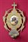 Acquasantiera in metallo dorato, con placca in porcellana smaltata raffigurante San Martino e il povero (Francia, Parigi)