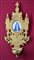 Acquasantiera in metallo dorato e placca in porcellana smaltata raffigurante la Madonna, stile gotico (Francia, Parigi)