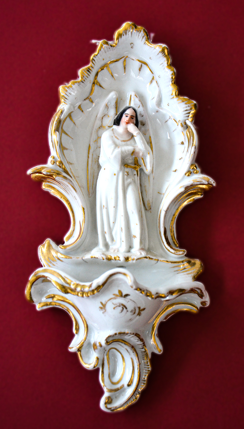 Acquasantiera in porcellana smaltata (Francia)