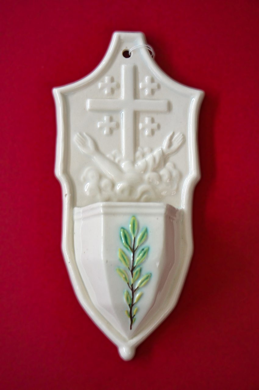 Acquasantiera in ceramica smaltata