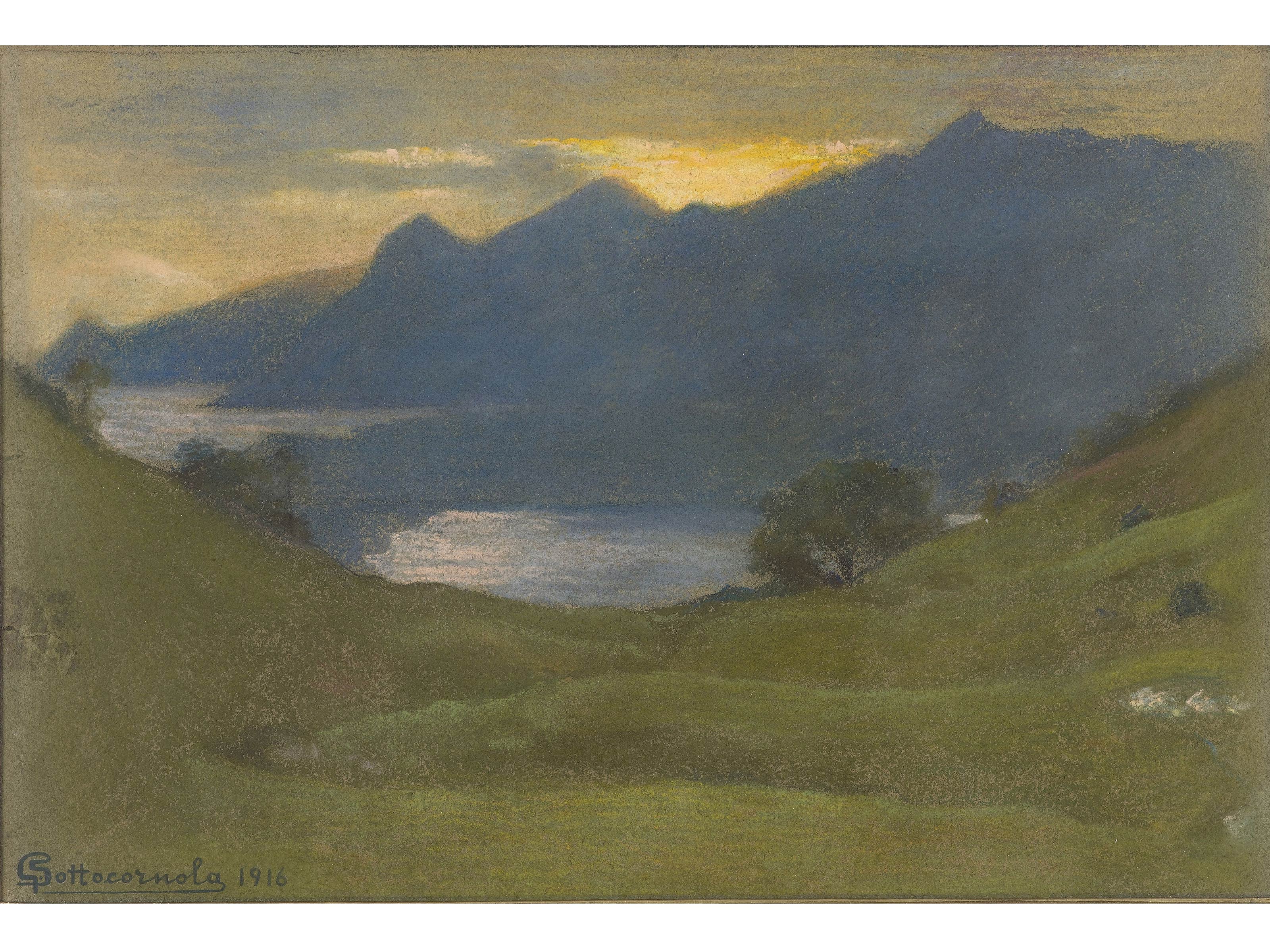 Giovanni Sottocornola (Milano 1855-1917) Paesaggio Pastello su carta Firmato e datato 1916 Misure 25x37 cm