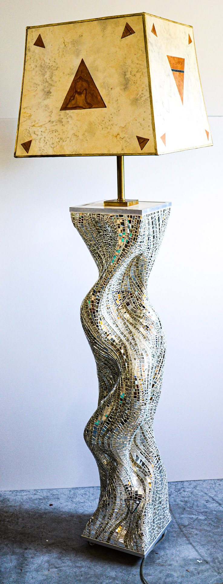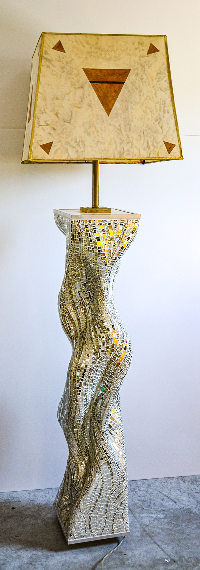 Lampada da terra con base a mosaico realizzata da Stefano Mancini.