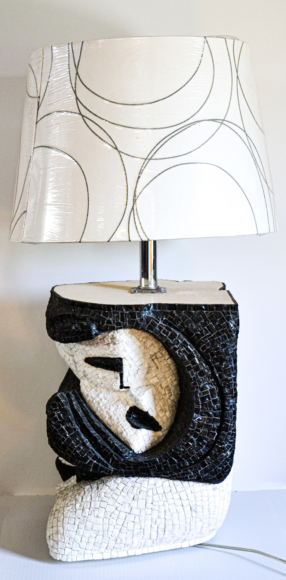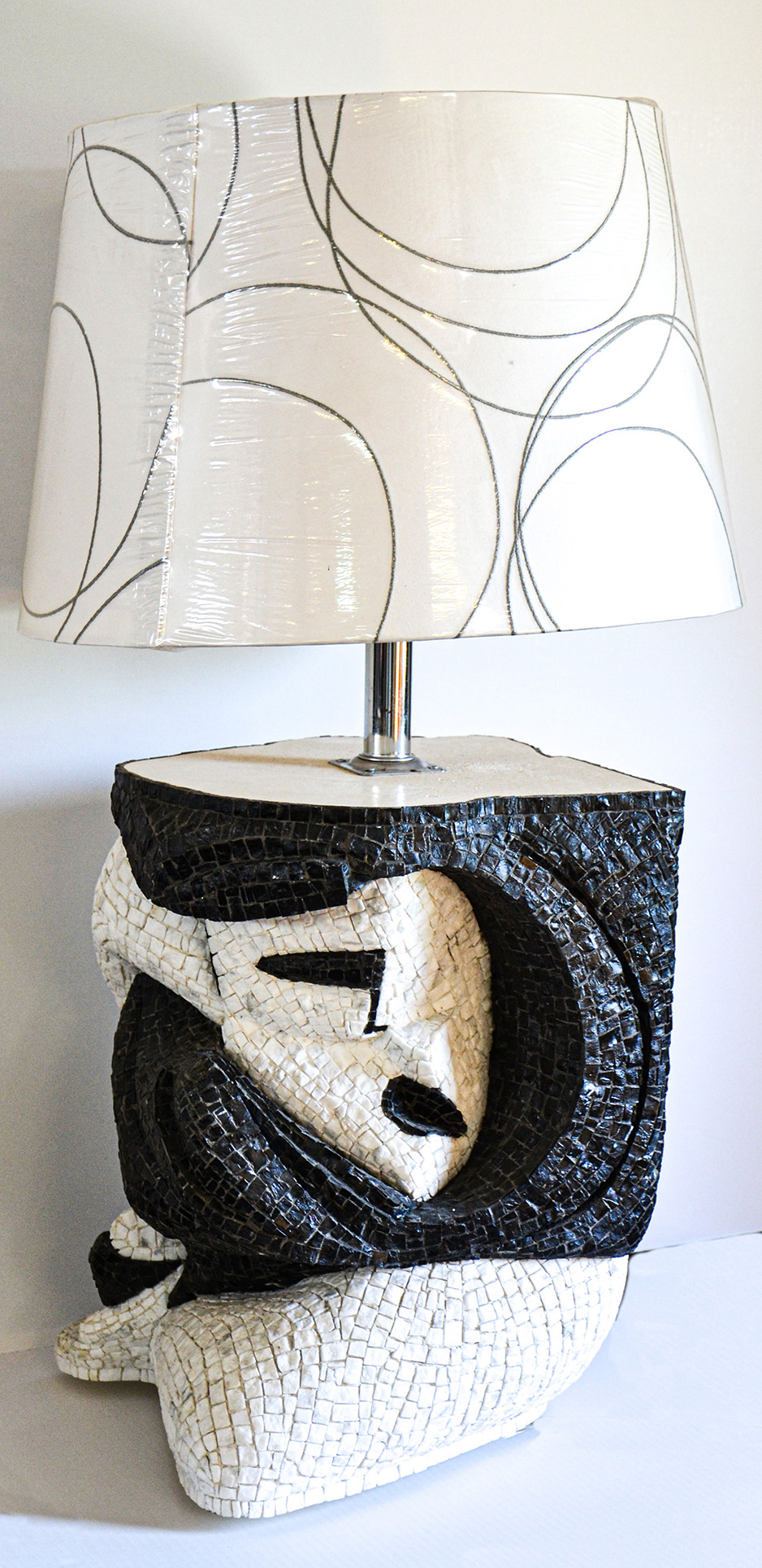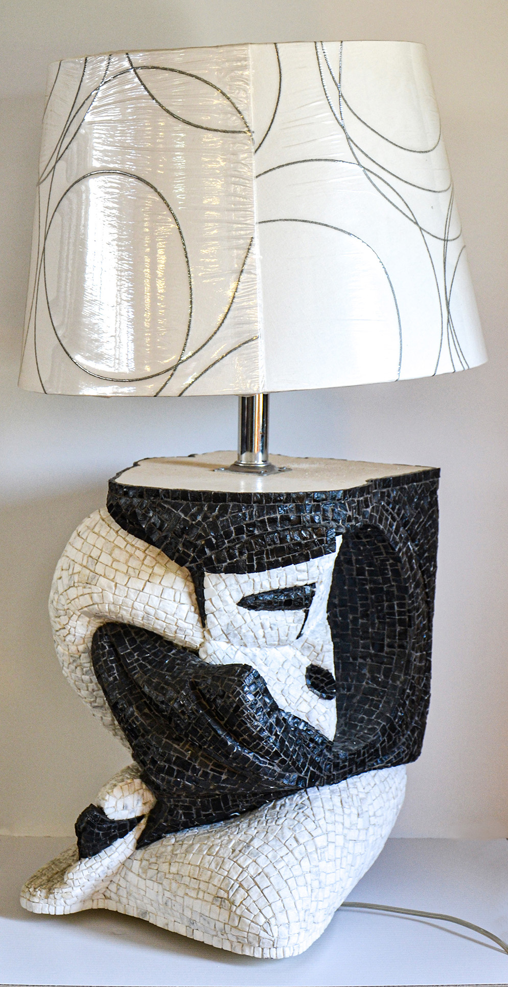 Lampada da tavolo con base a mosaico realizzata da Stefano Mancini.