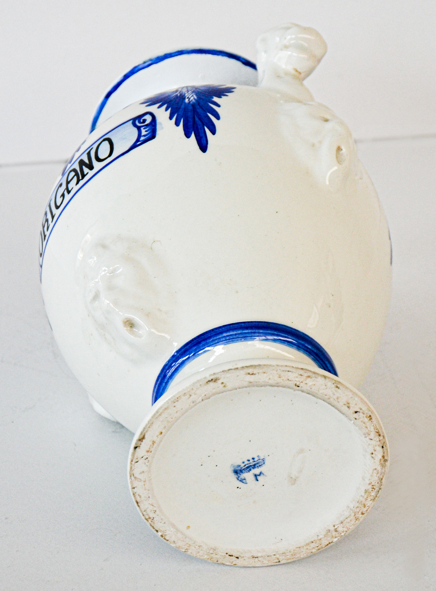 decorazione monocroma blu, cartiglio epigrafico “Origano”.
