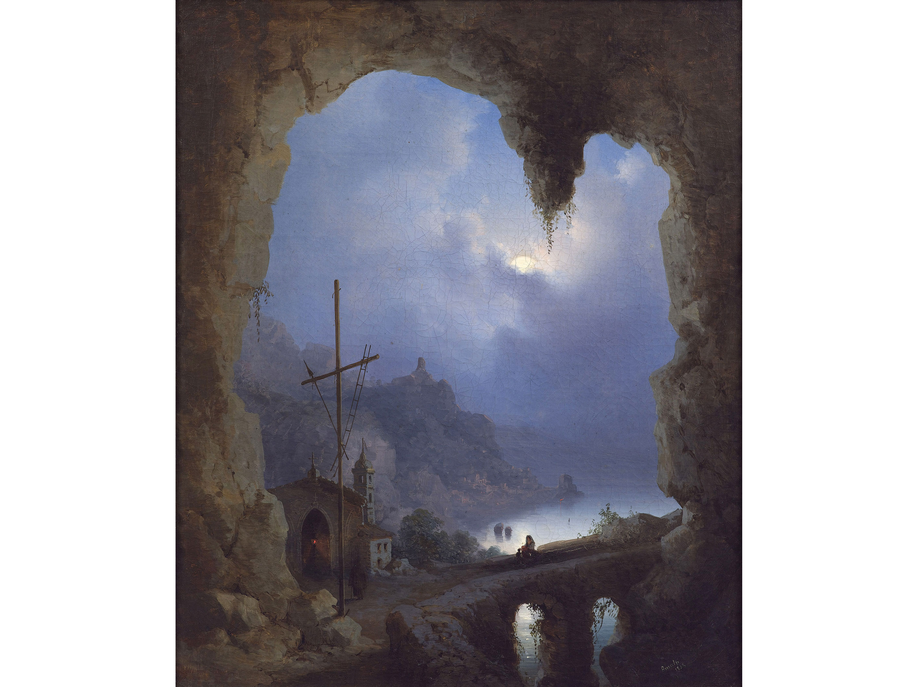 Lot 18 | Anonimo (XIX secolo) Amalfi Olio su tela Datato 1854 Misure 58,5x48,5 cm