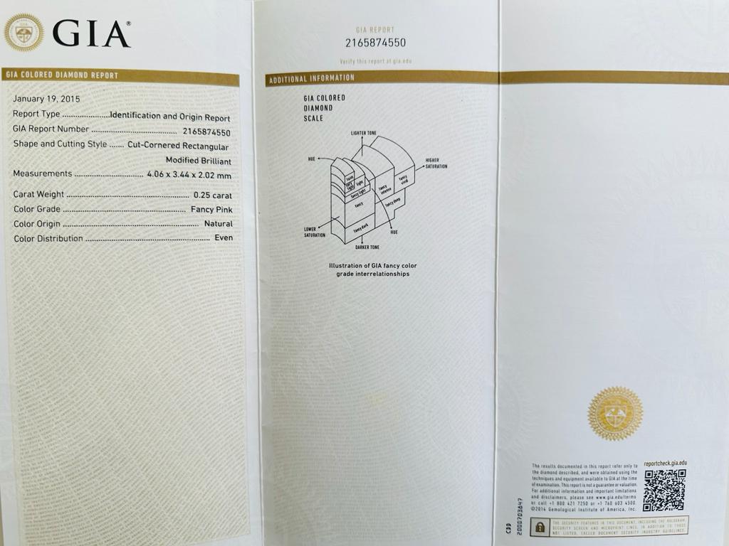 DIAMANTE 0,25 CT FANCY ROSA TAGLIO RADIANTE - CERTIFICATO GIA - AR30205