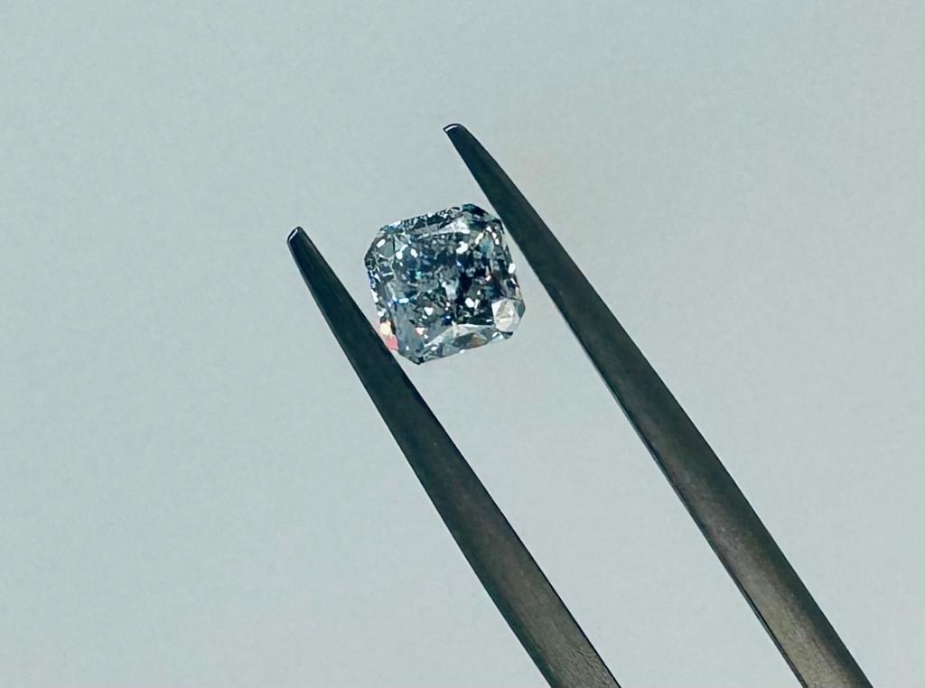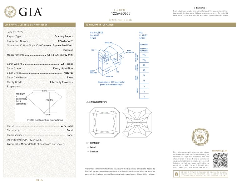 DIAMANTE 0,61 CT FANCY BLU CHIARO , DISTRIBUZIONE COLORE UNIFORME – PUREZZA IF - TAGLIO CUSCINO – JR30201