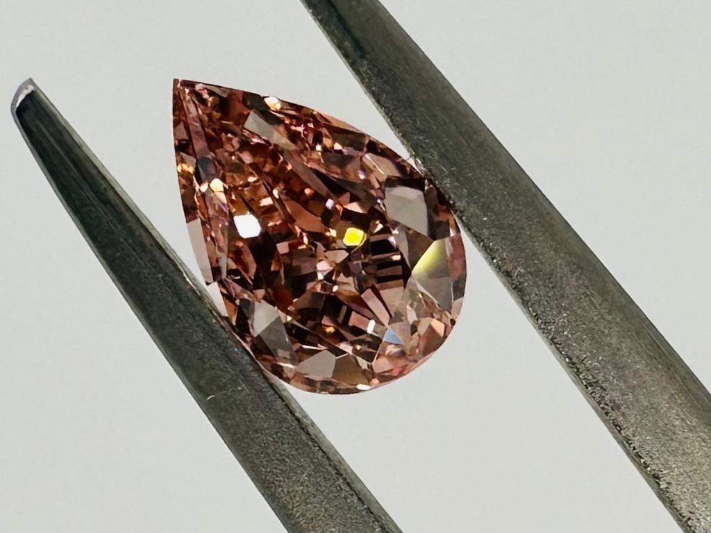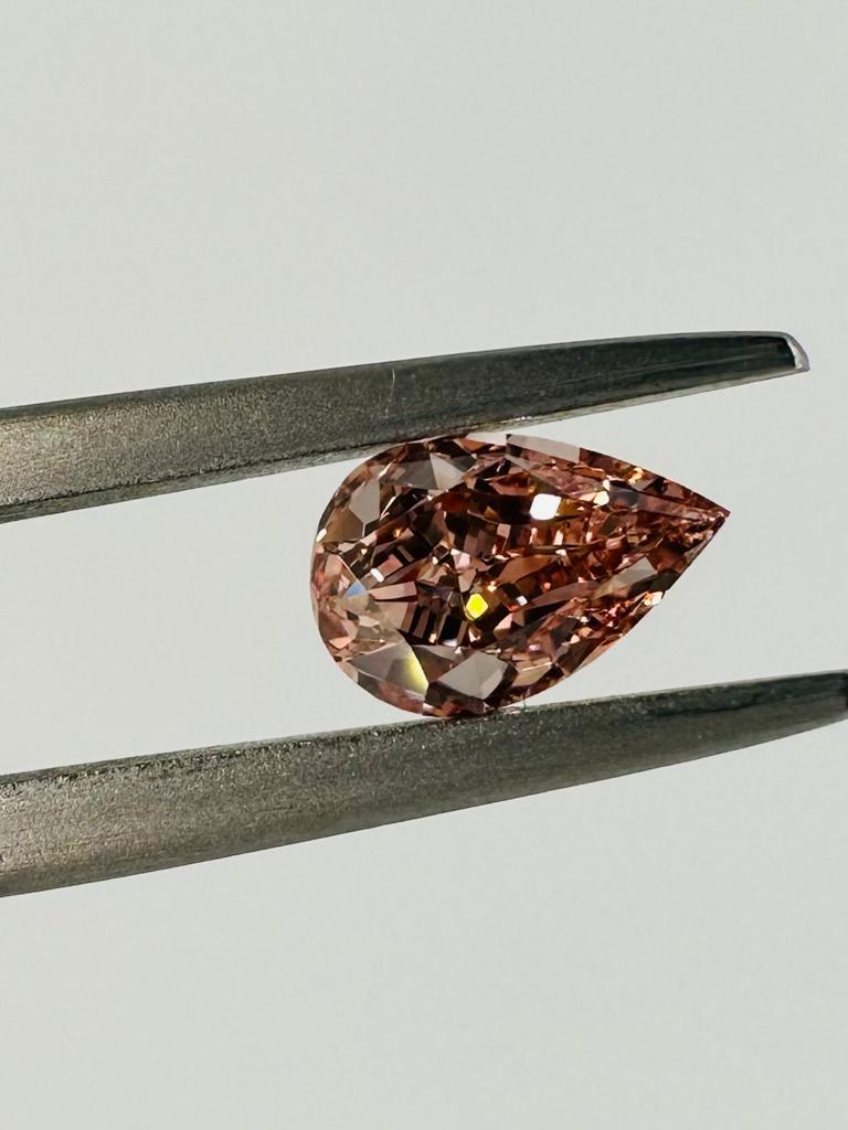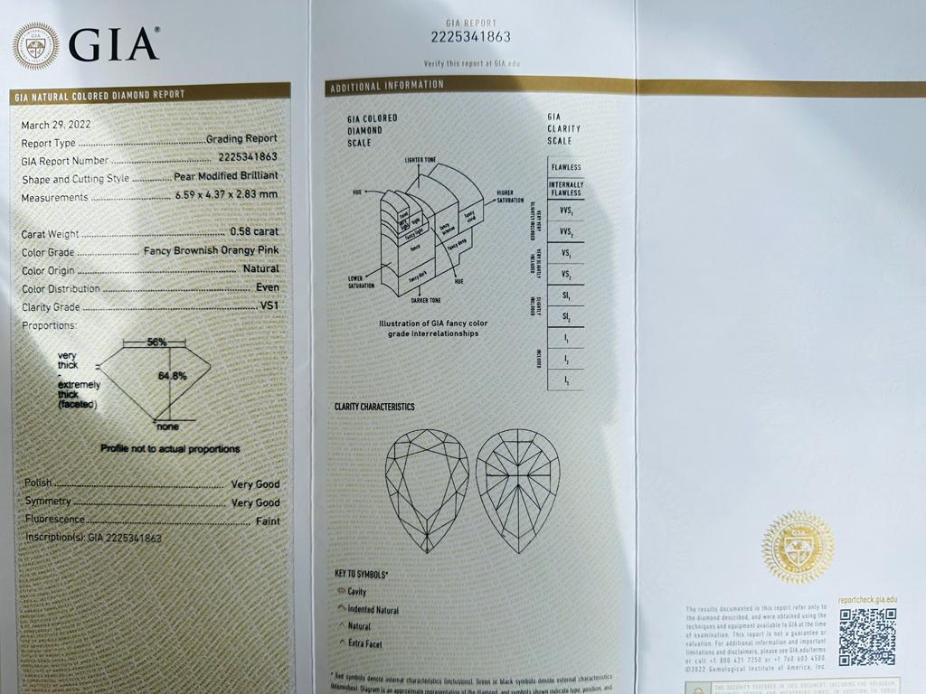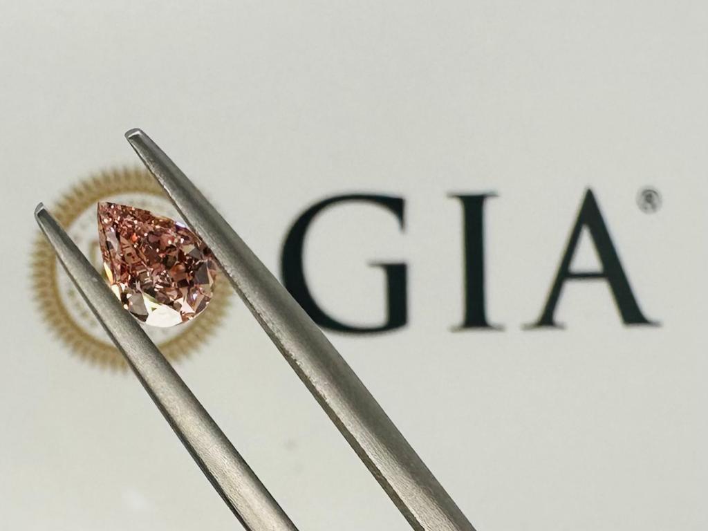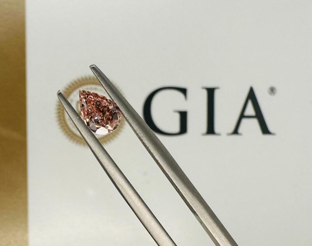 DIAMANTE 0,58 CT FANCY MARRONCINO ARANCIATO ROSA, DISTRIBUZIONE COLORE UNIFORME - PUREZZA VS1 - TAGLIO PERA - CERTIFICATO GIA - AR30206