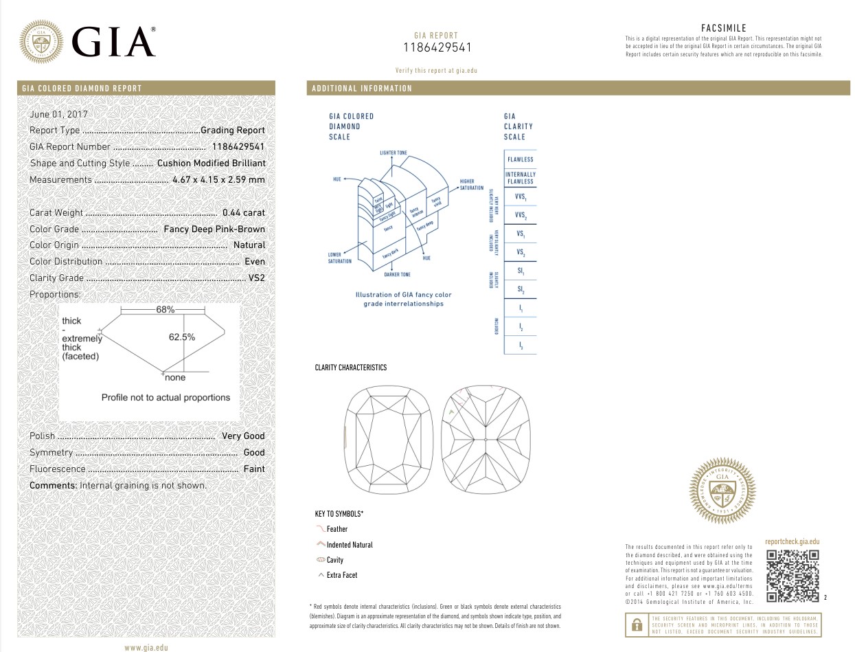 DIAMANTE 0,44 CT FANCY ROSA MARRONE INTENSO - PUREZZA PUREZZA VS2 - TAGLIO CUSCINO - CERTIFICATO GIA - AR30208