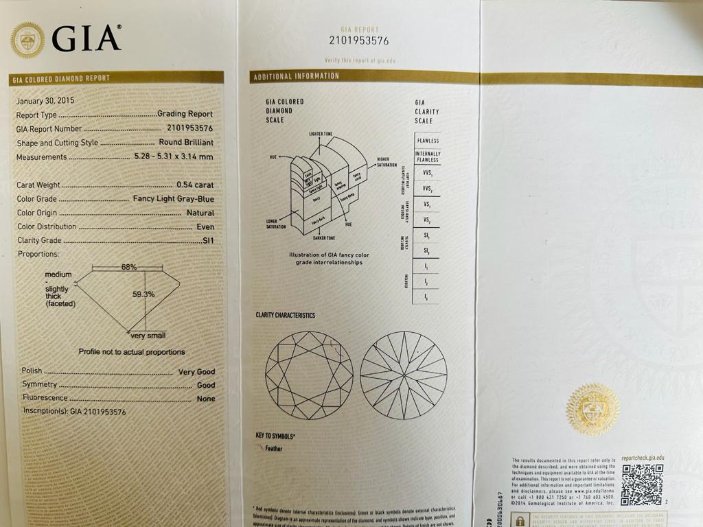 DIAMANTE 0,54 CT FANCY GRIGIO CHIARO BLU - PUREZZA SI1 - TAGLIO BRILLANTE - CERTIFICATO GIA - MN30202