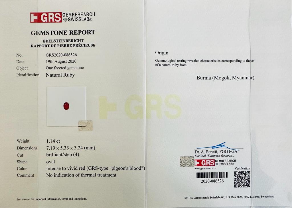 Lot 58 | DIAMANTE 1,14 CT ROSSO VIVIDO BIRMANO TAGLIO OVALE - CERTIFICATO GRS - MN30210