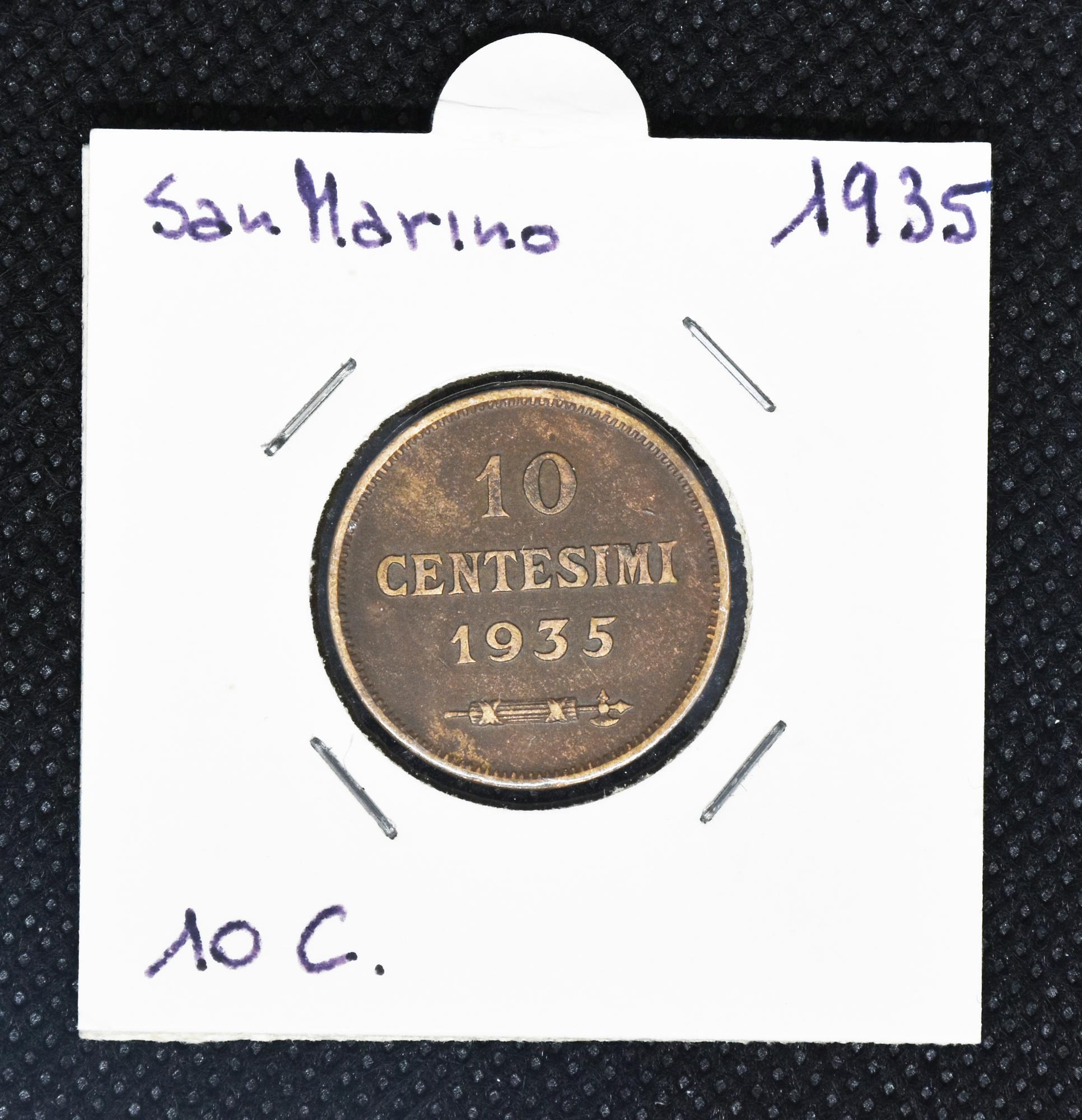 Previous Lot 34 Next Livebid - Via Tiziano Vecellio 34/D, 10126 Torino MONETE DEL MONDO E ITALIANE Sessione Unica Thursday 30 March 2023 hours 21:00 (UTC +01:00) 10 CENTESIMI REPUBBLICA DI SAN MARINO 1935 10 CENTESIMI REPUBBLICA DI SAN MARINO 1935