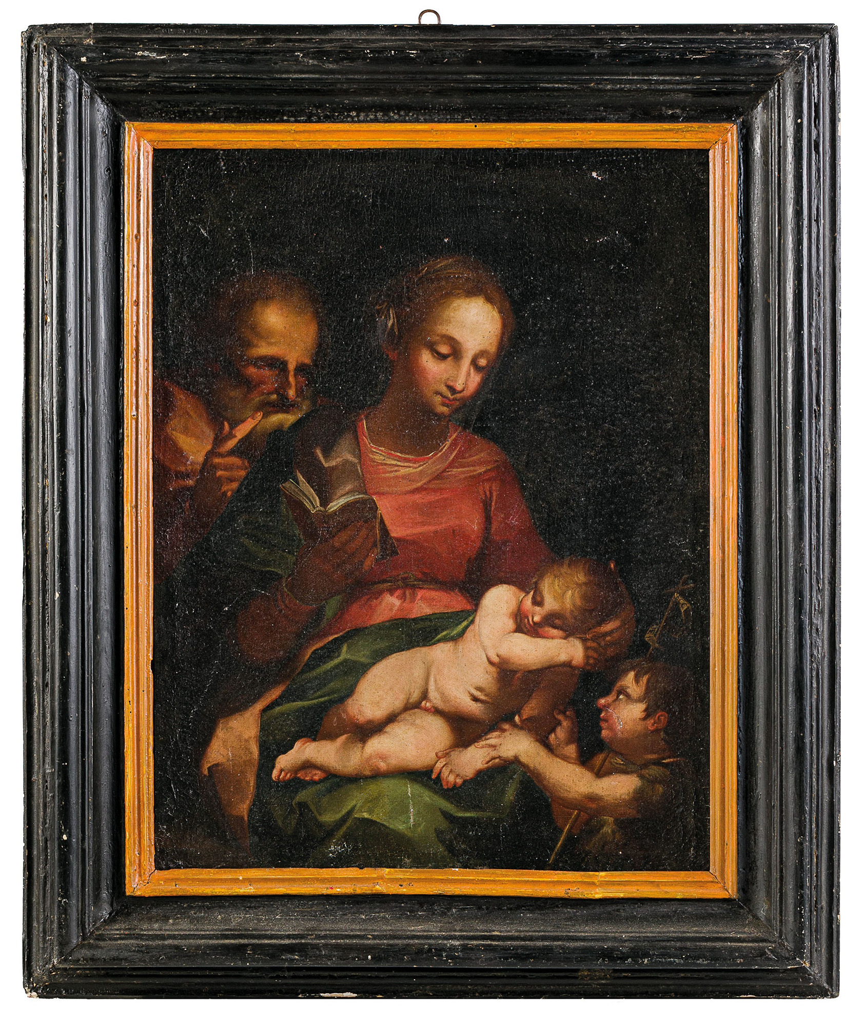 Sacra famiglia con San Giovannino olio su tela fine sec.XVI inizio sec.XVII