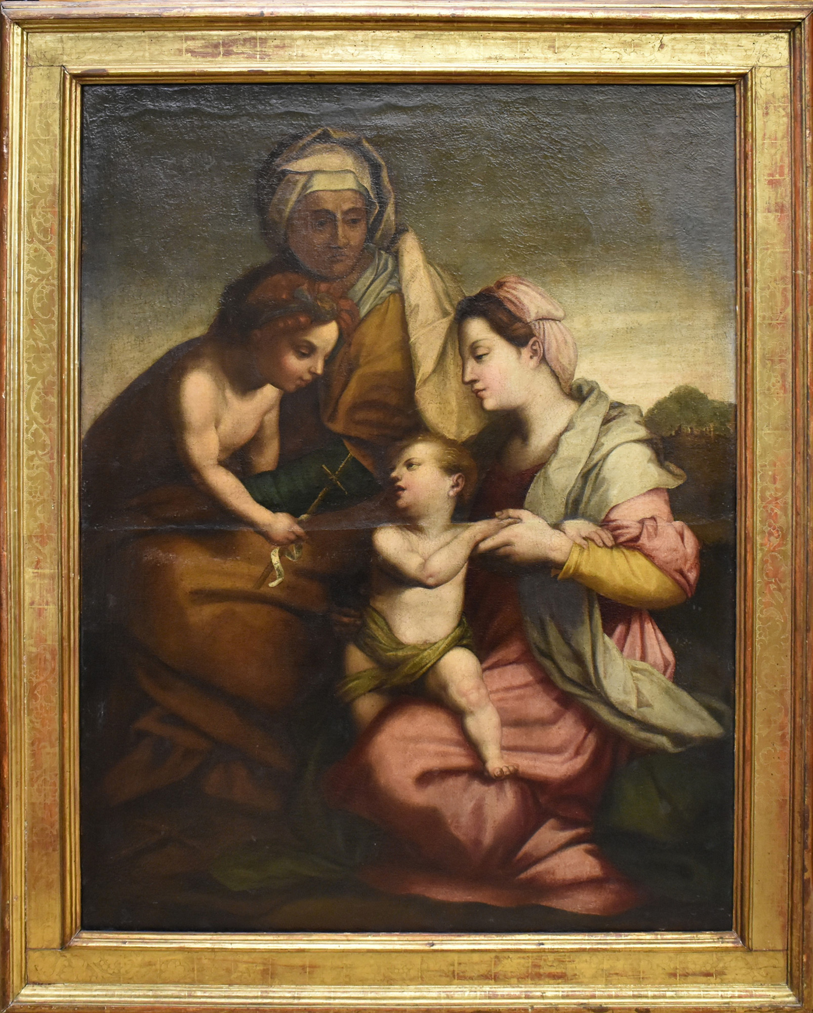 olio su tela 'Madonna con bambino Sant'Anna e San Giovannino' sec.XVII