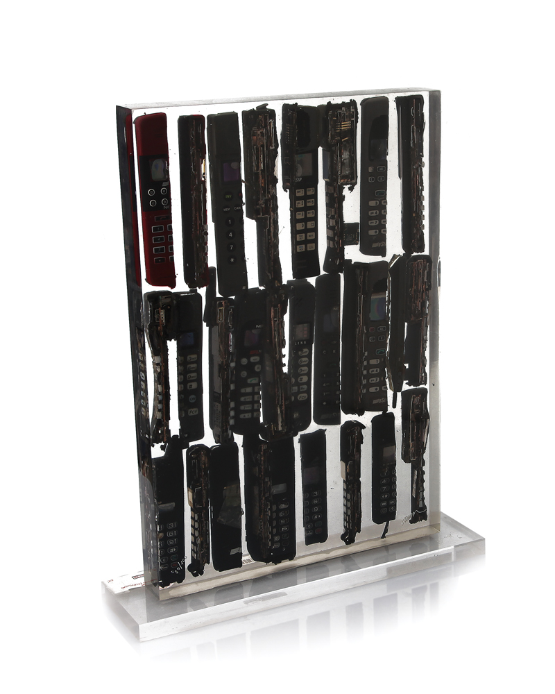 ARMAN Nizza 1928 - New York 22/10/2005 Senza titolo accumulazione di telefoni cellulari cm.52x42x12, esemplare 84/100, firma in basso a destra, certificato della FBArte allegato che dichiara che l'opera è stata visionata dalla Fondazione in data 29/11/2011.