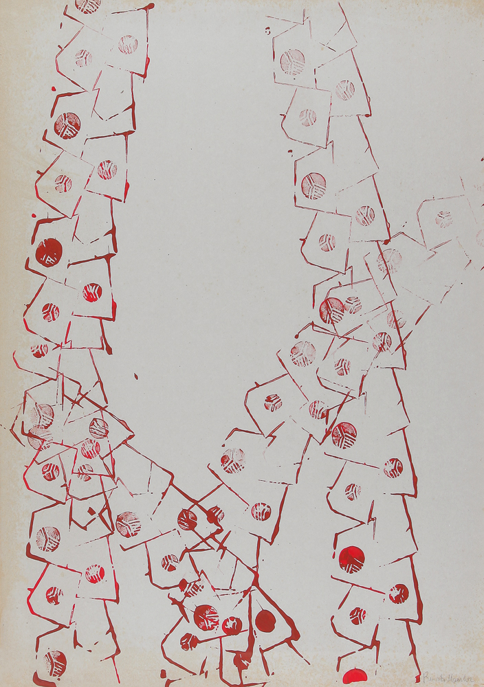 RENATO MAMBOR Roma 04/12/1936 Prove Rullo, 1968 tecnica mista su cartoncino cm. 102x72, firma in basso a destra, dichiarazione d'autenticità dell'artista su foto.