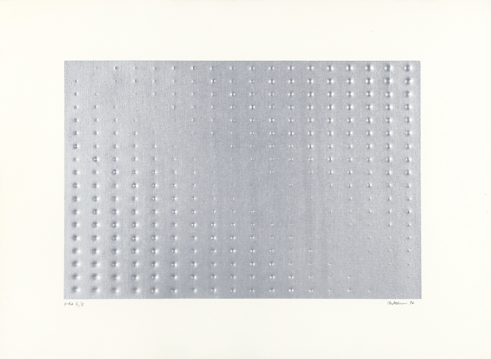ENRICO CASTELLANI Castelmassa (Ro) 04/08/1930 Senza titolo, 1974 serigrafia su carta cm. 55x75, esemplare PdA 2/7, firma e anno in basso a destra.