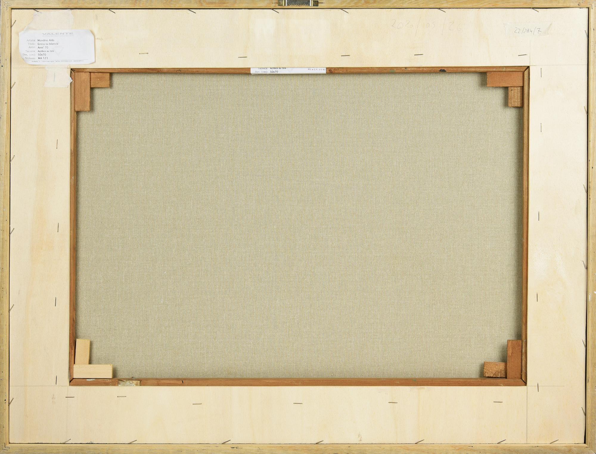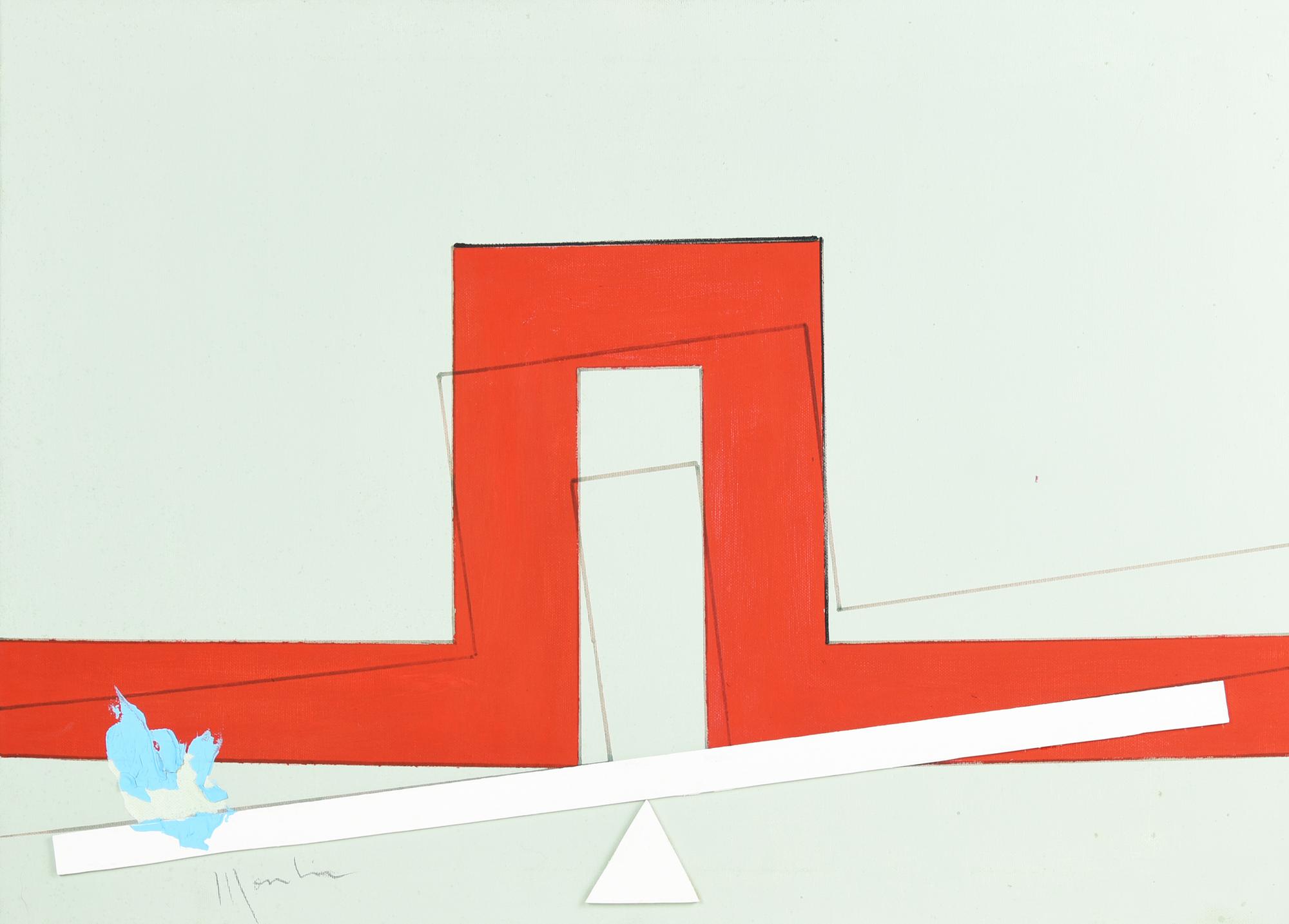 Aldo Mondino GRECA SU BILANCIA acrilico su tela, cm 50x70 firma sul retro:...