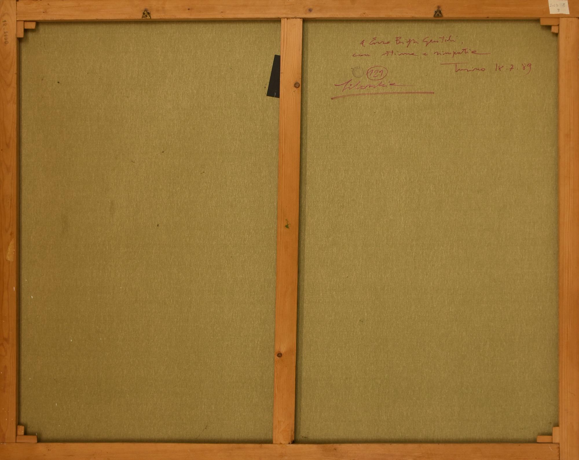 sul retro: firma, dedica ad personam e timbro dell'artista