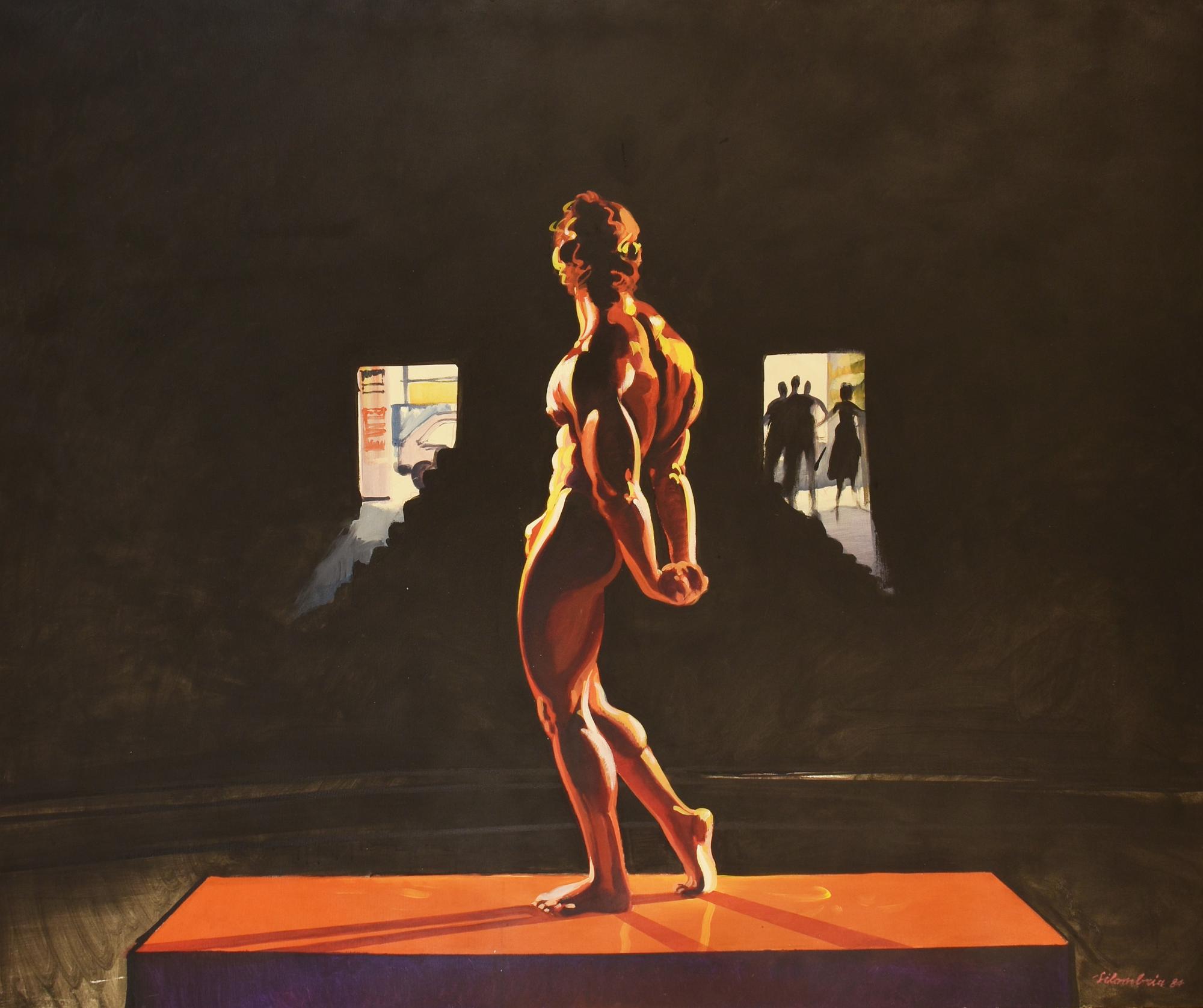 Marco Silombria IL CULTURISTA olio su tela, cm 120x150 firma e data sul...