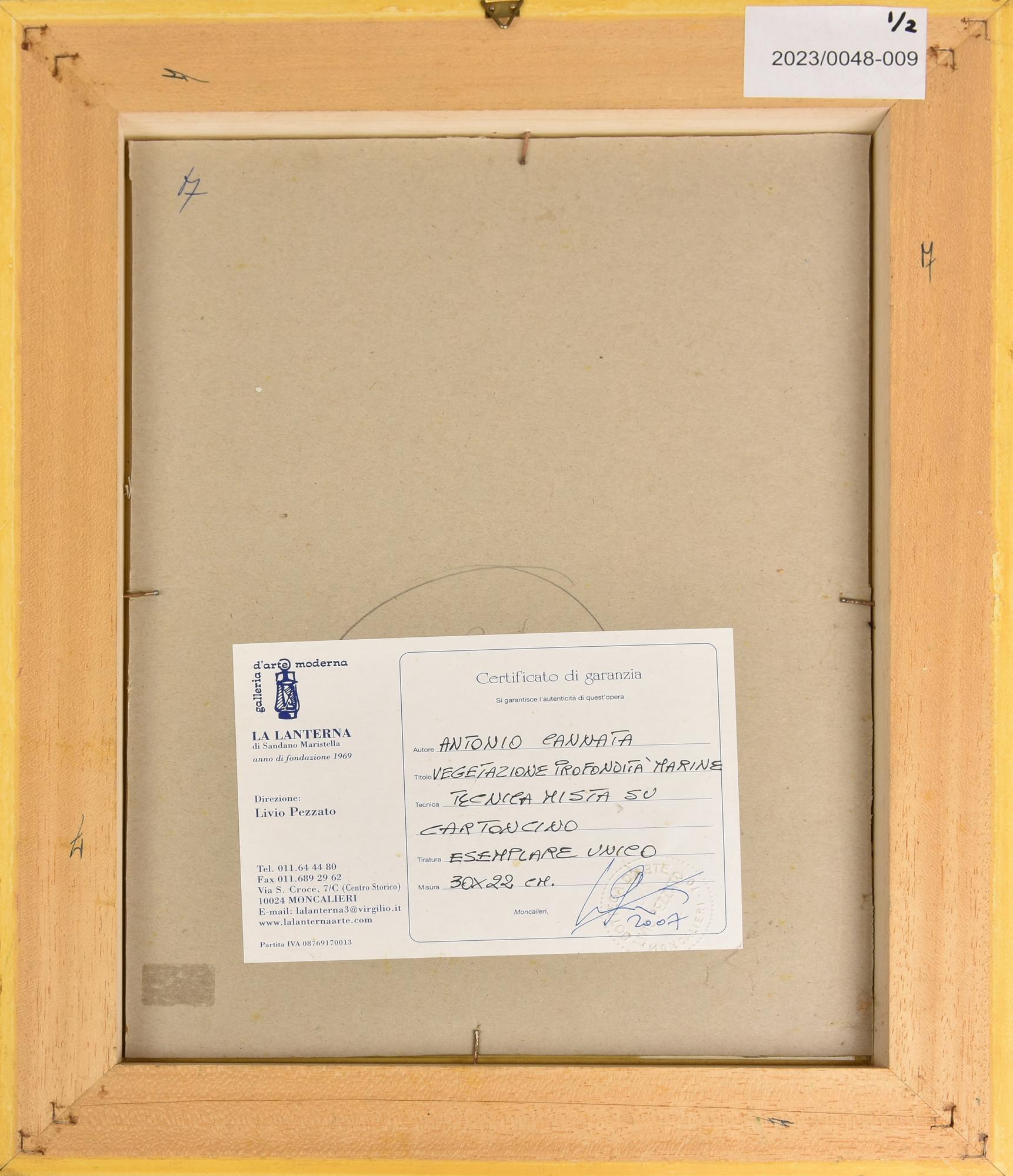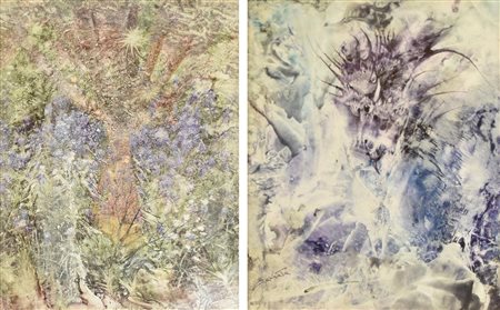 Antonio Cannata VEGETAZIONI MARINE dittico di tecniche miste su cartoncino,...