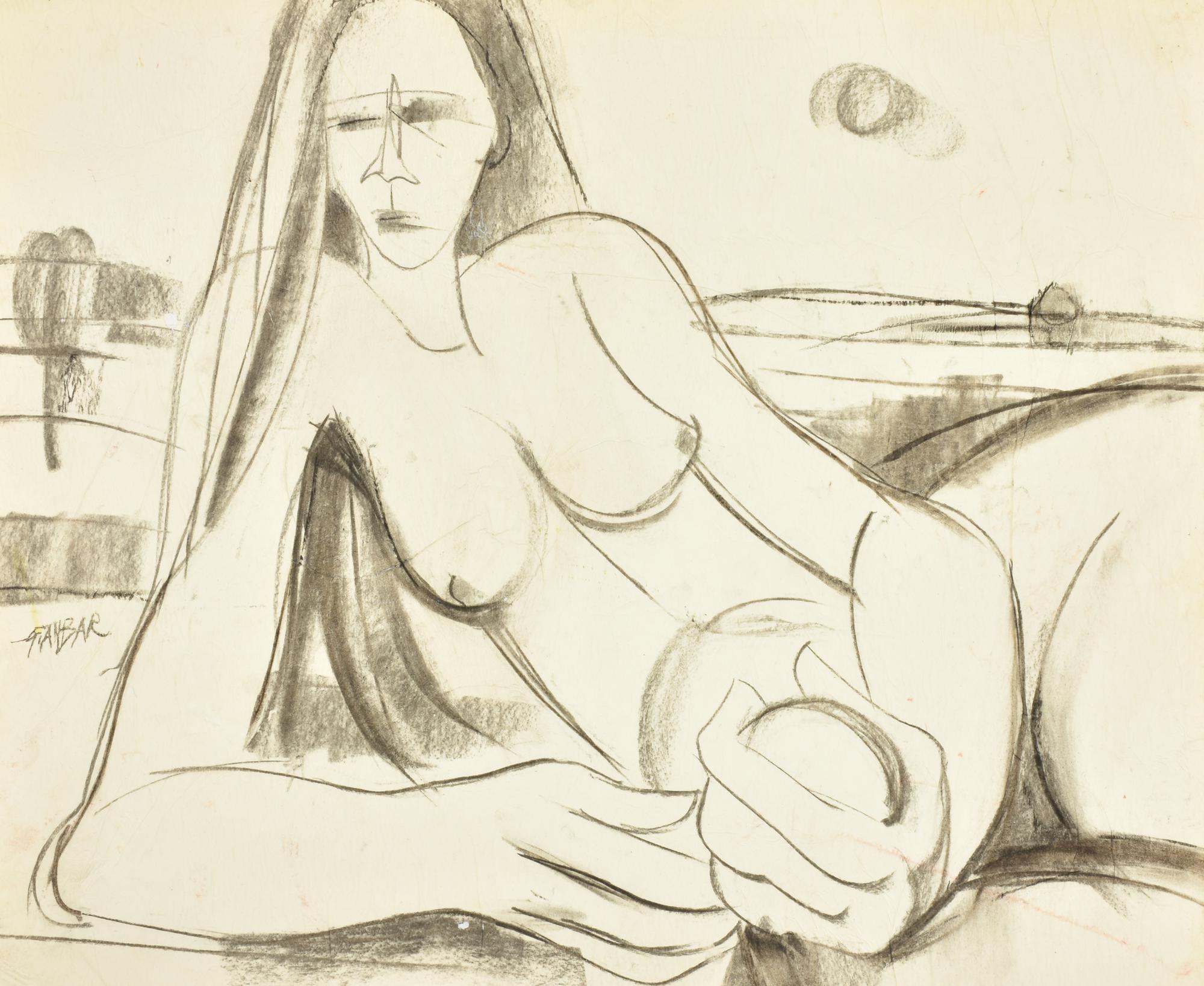 GIANBAR (Gianni Baretta) DONNA CON MELA carboncino su carta applicata su...